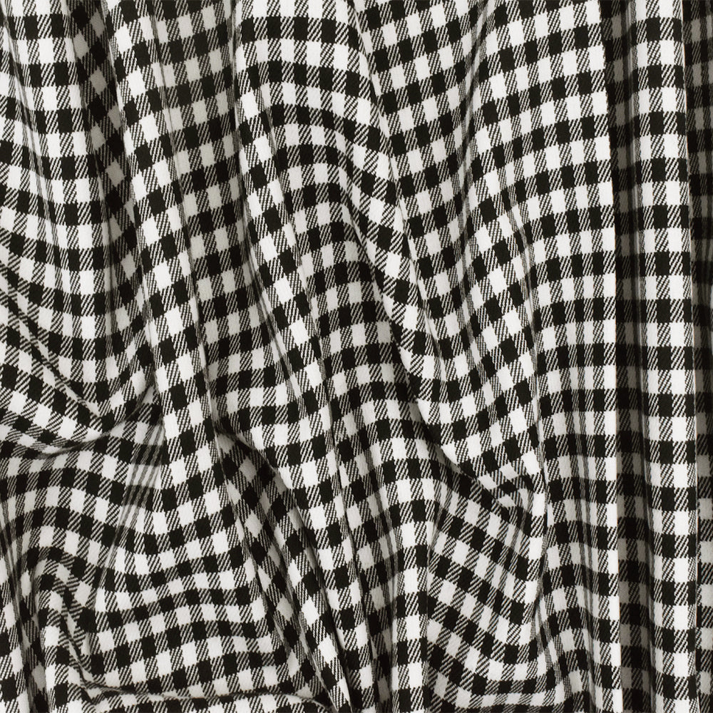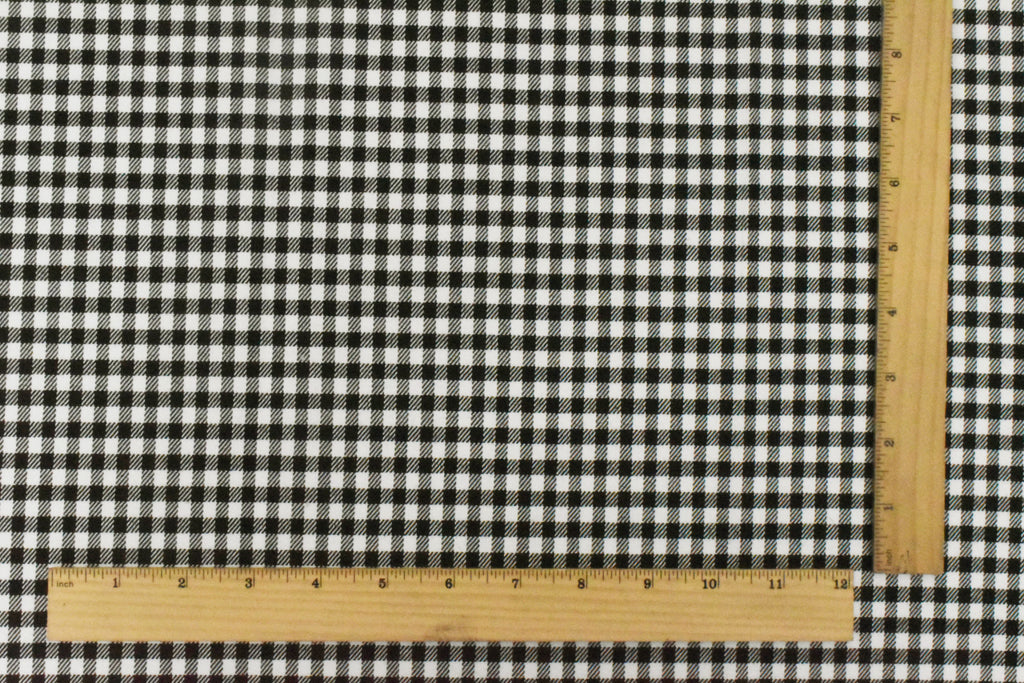 Black-White Gingham Poly-Cotton Twill Woven Fabric