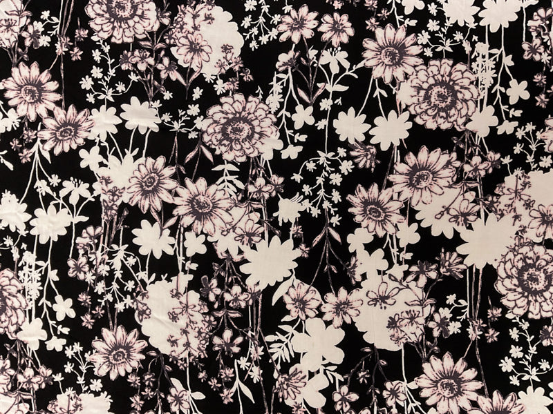 Black-White-Multi Rayon Floral Printed Challis Woven Fabric