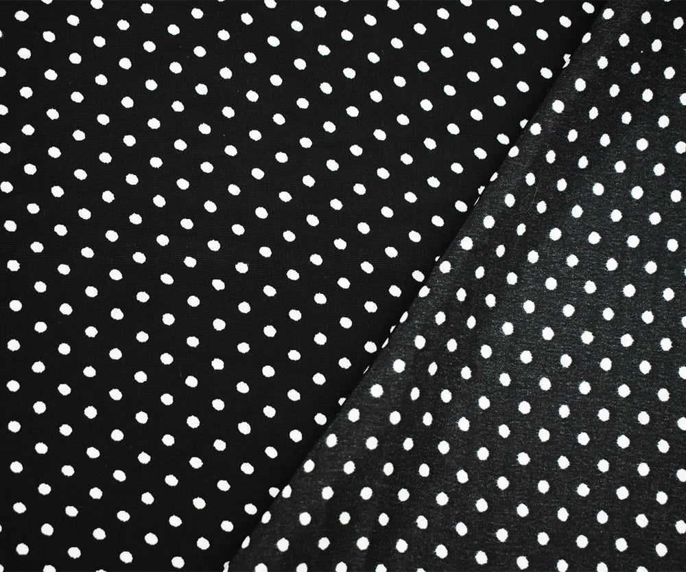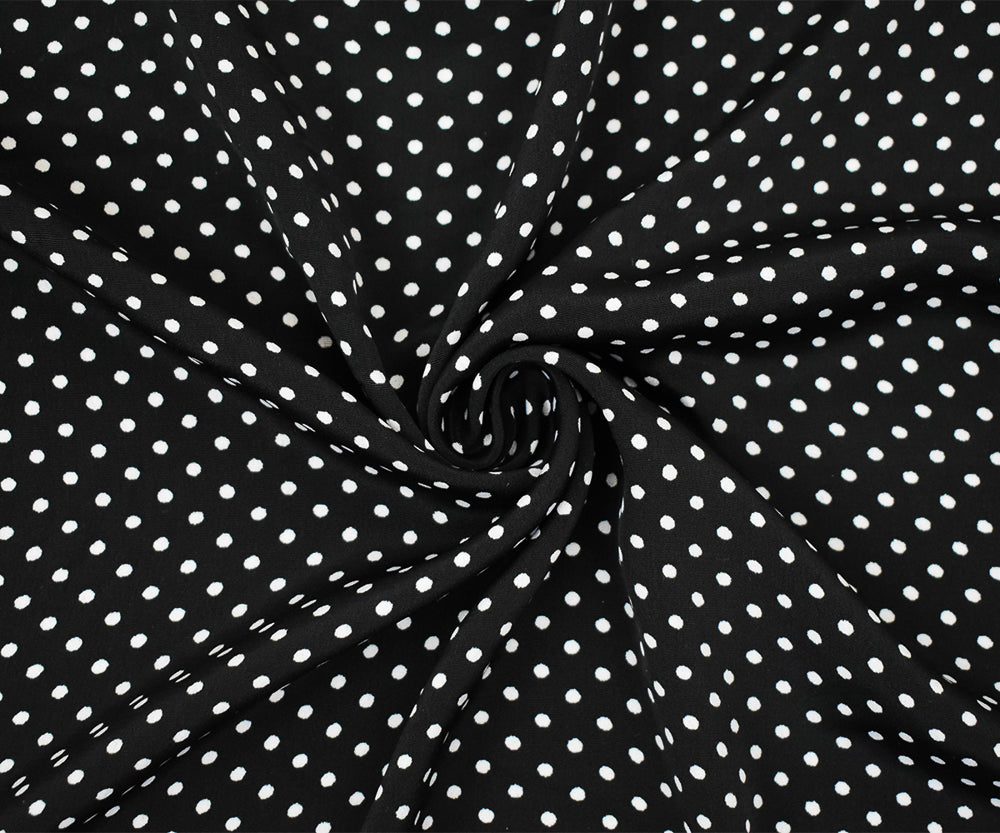 Black-White Polka Dot Printed Polyester Faille Woven Fabric