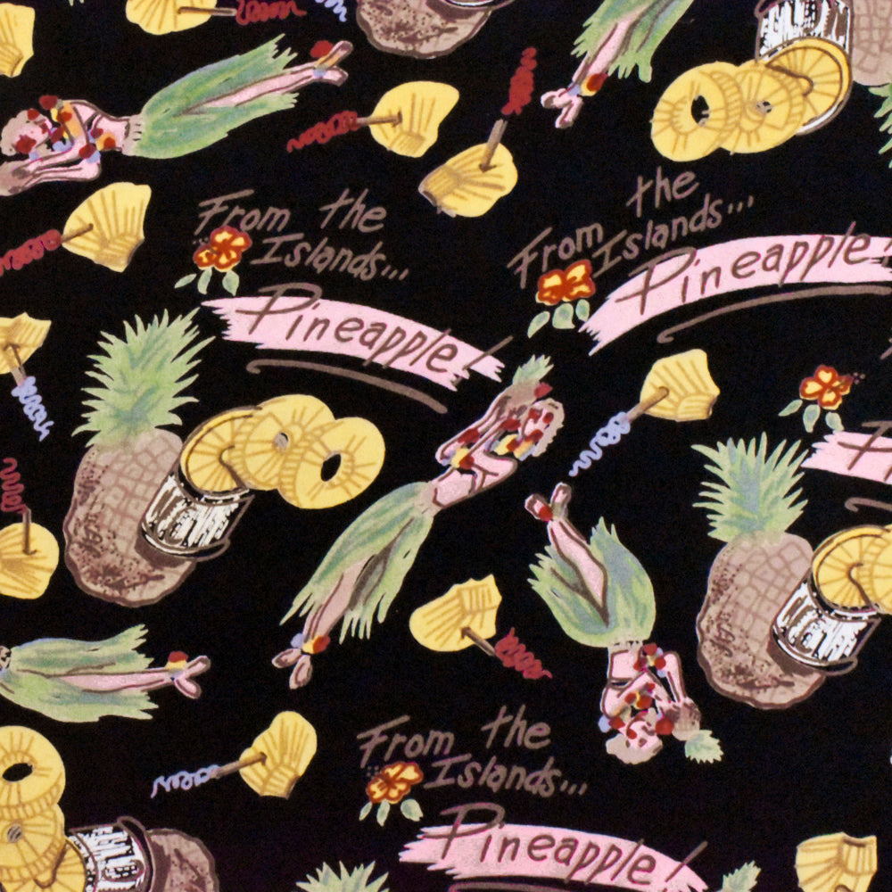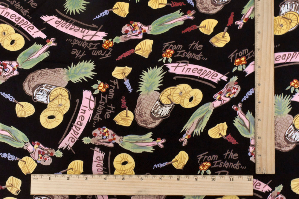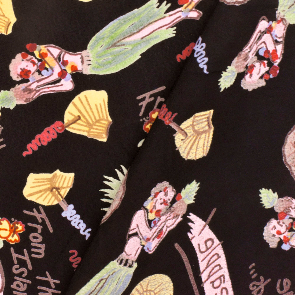 Black-Yellow-Multi Hawaii Vibes Printed Rayon Crepe Faille Woven Fabric