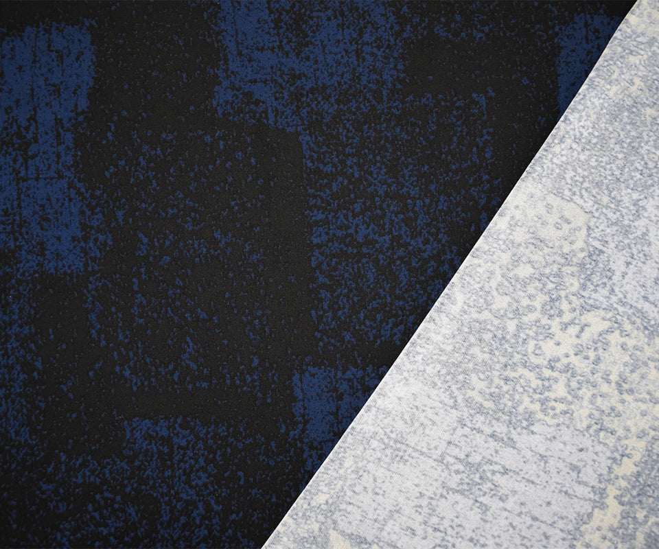 Blue-Black Poly Abstract Printed Stretch ITY Jersey Knit Fabric