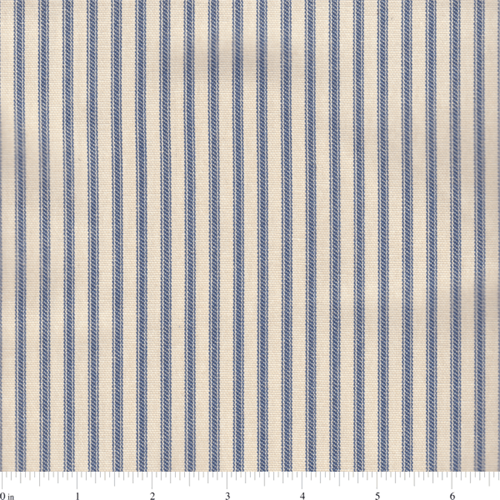 Blue & Ivory Print Cotton Duck Ticking Fabric