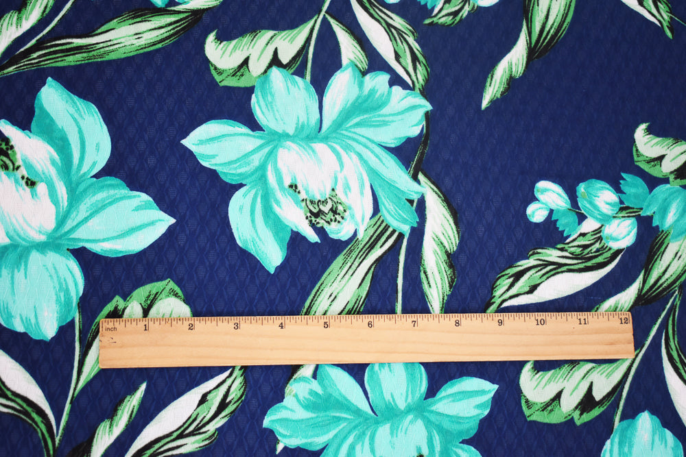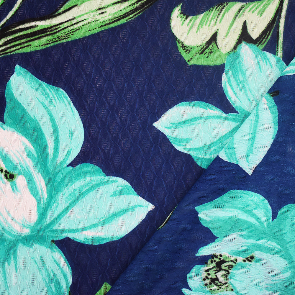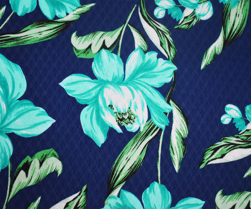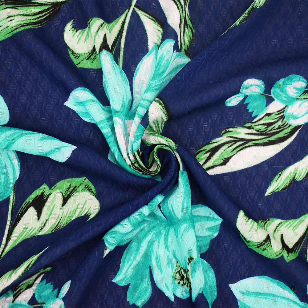 Blue-Green-Multi Floral Printed Ogee Texture Dobby Chiffon Woven Fabric