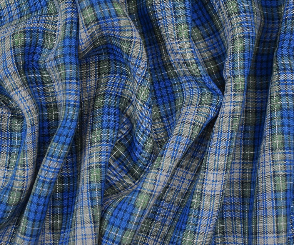 Blue-Green-Multi Moygashel Washed Plaid Irish Linen Woven Fabric