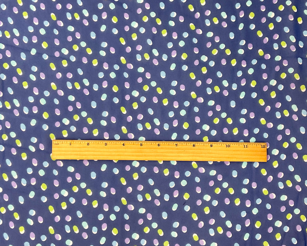 Blue-Green-Multi Poly Dot Printed Chiffon Woven Fabric