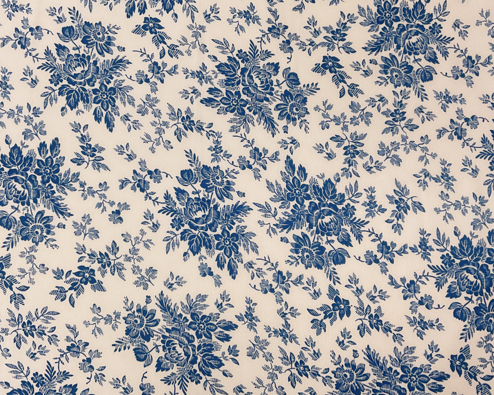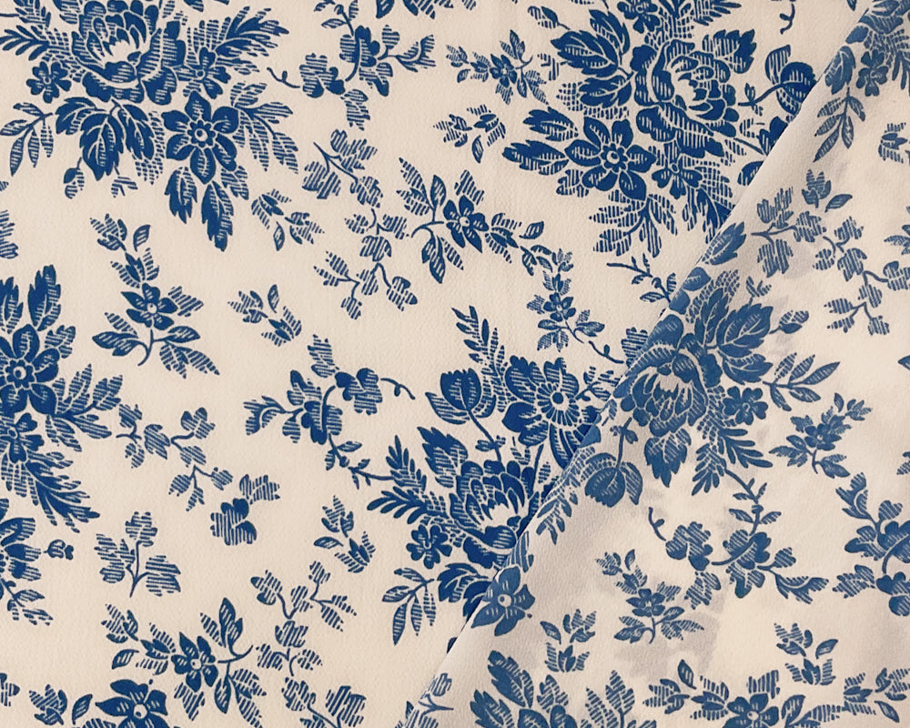 Blue-Ivory Poly Floral Printed Pebble Crepe Woven Fabric