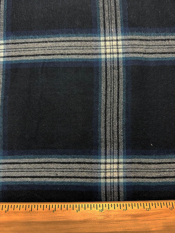 Blue Multi Plaid Single Sided Flannel Shirting Fabric