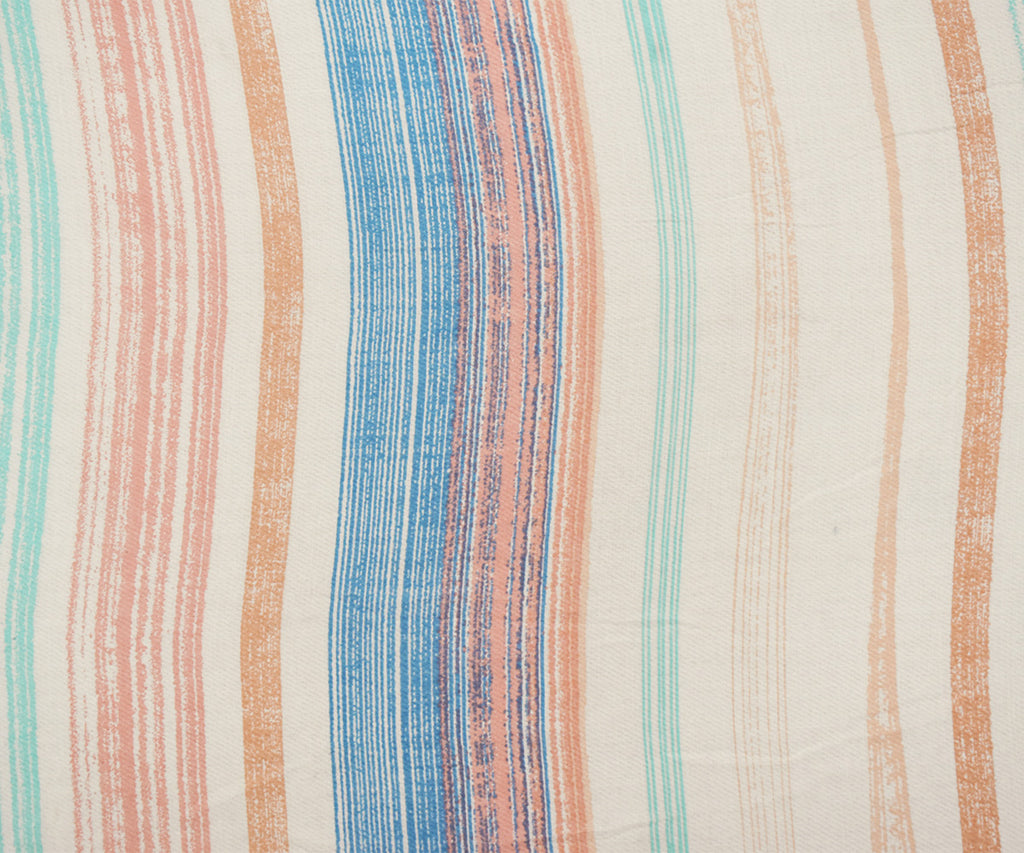 Blue-Orange-Multi Famous Maker Cotton Stripe Printed Lawn Woven Fabric