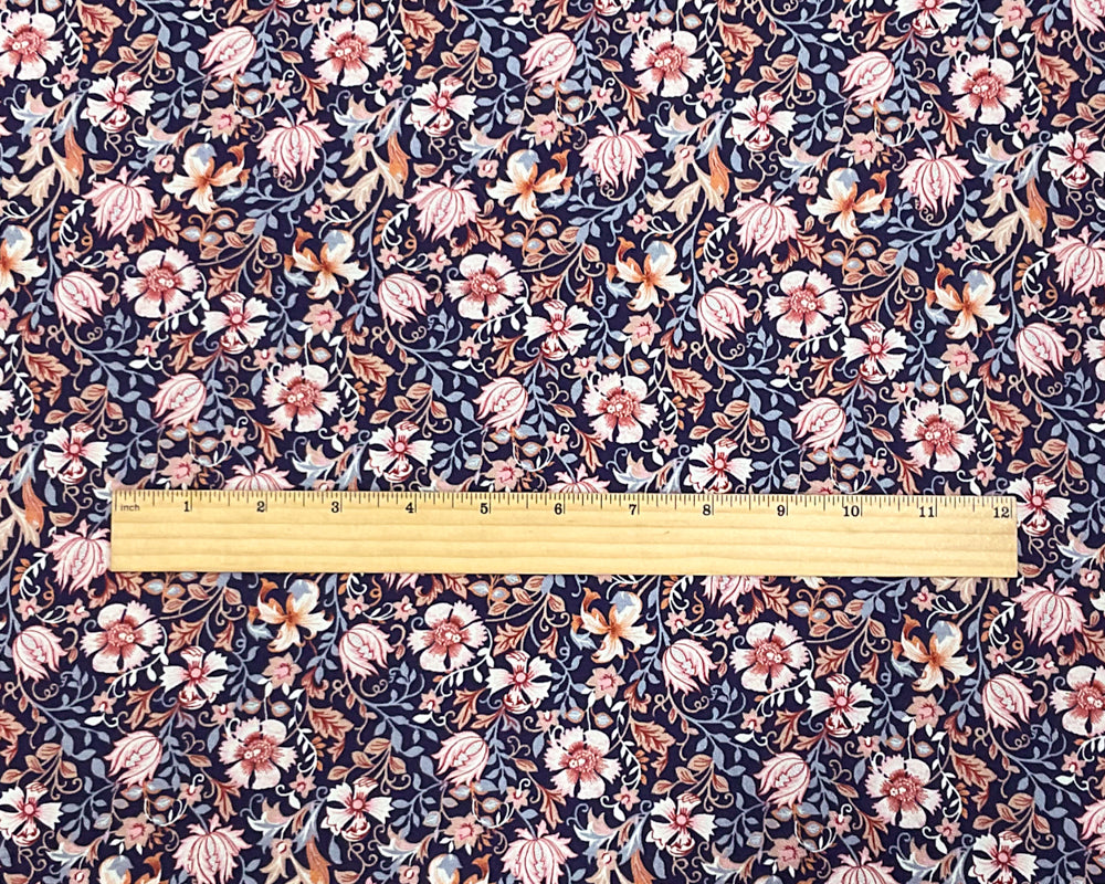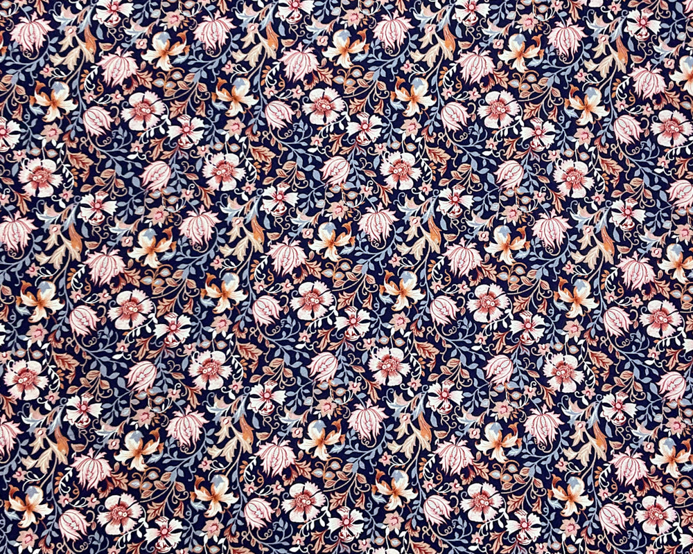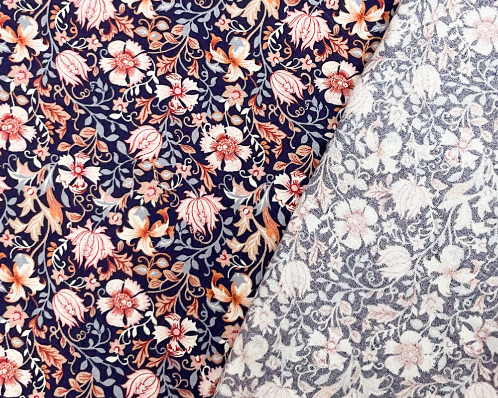 Blue-Pink-Multi Rayon Floral Printed Momie Crepe Woven Fabric