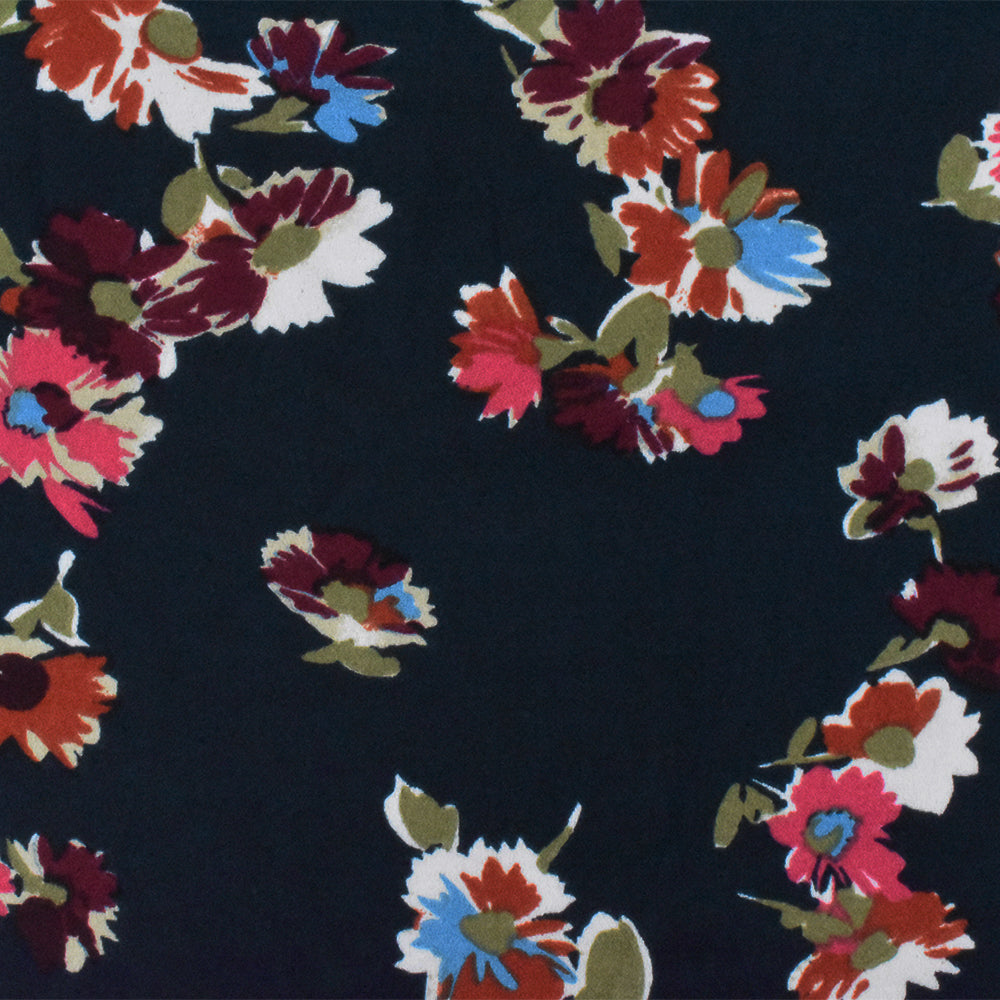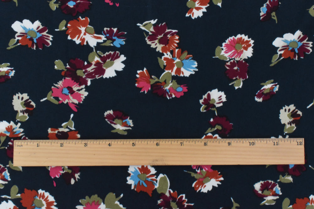 Blue-Red-Multi Floral Printed Poly Momie Woven Fabric