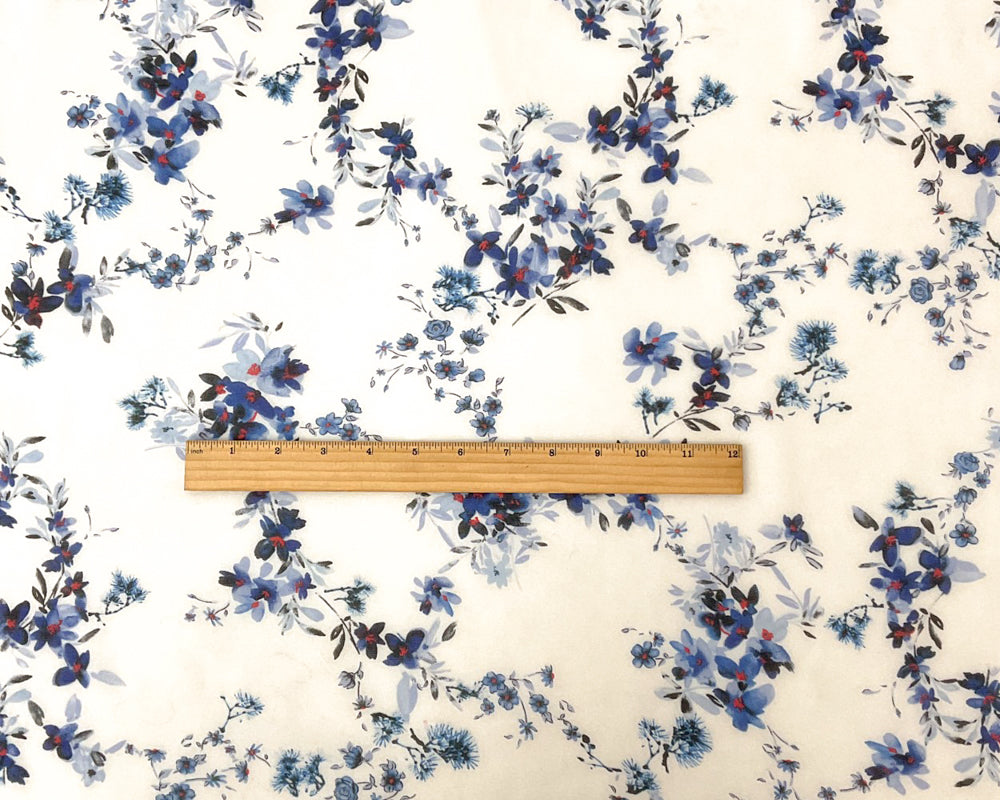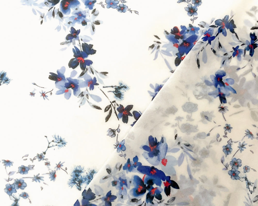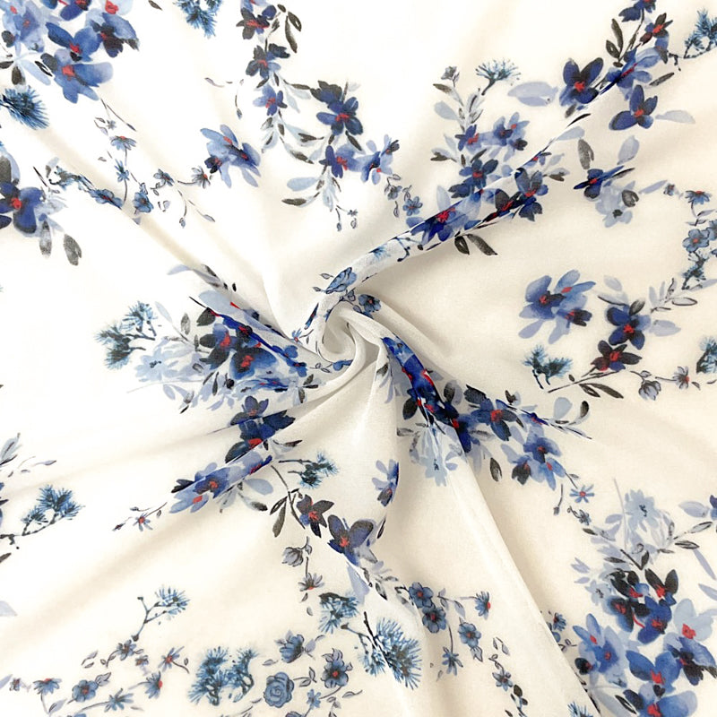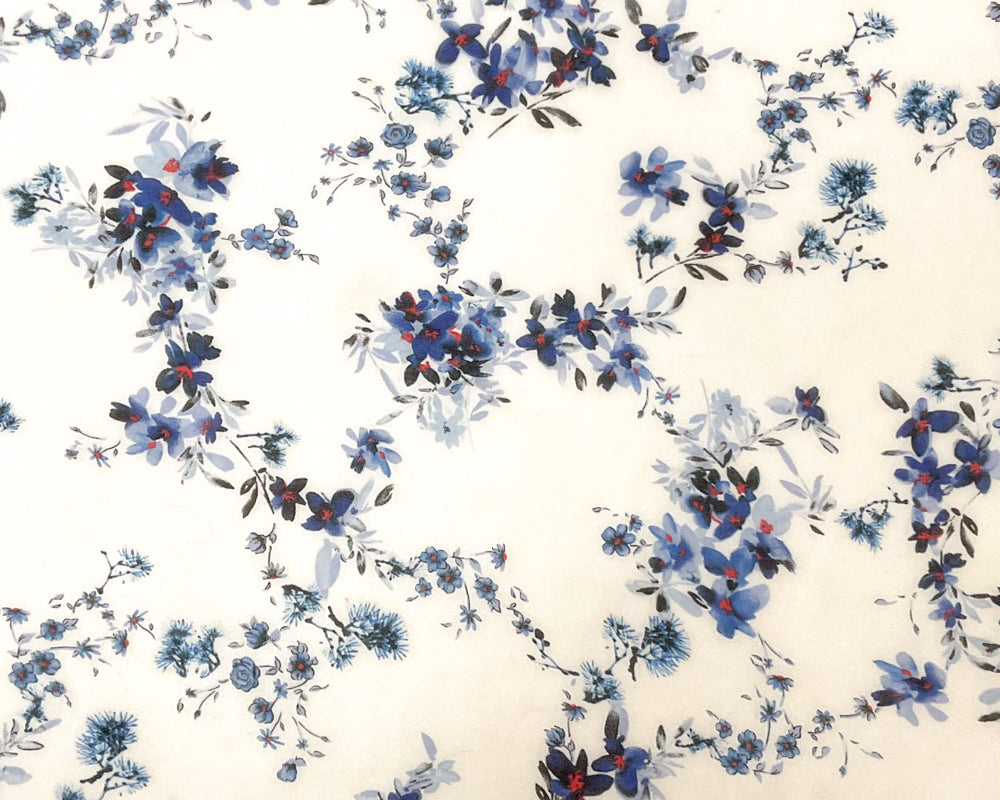 Blue-White-Multi Poly Floral Printed Pebble Chiffon Woven Fabric