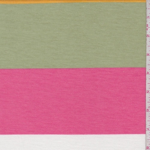 Celery/Pink/Gold Multi Stripe Baby French Terry Knit Fabric
