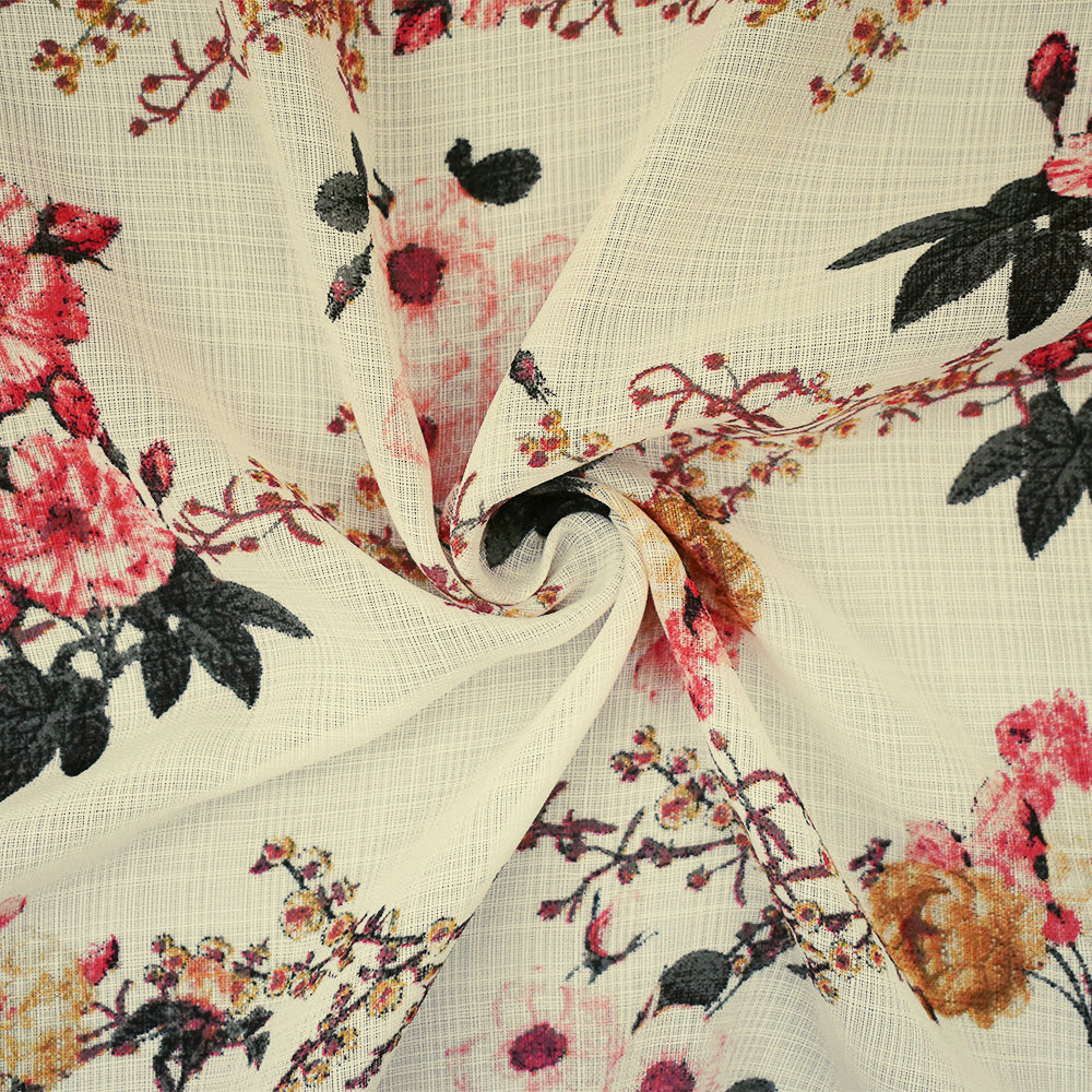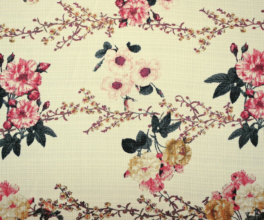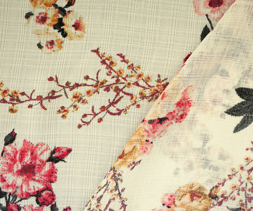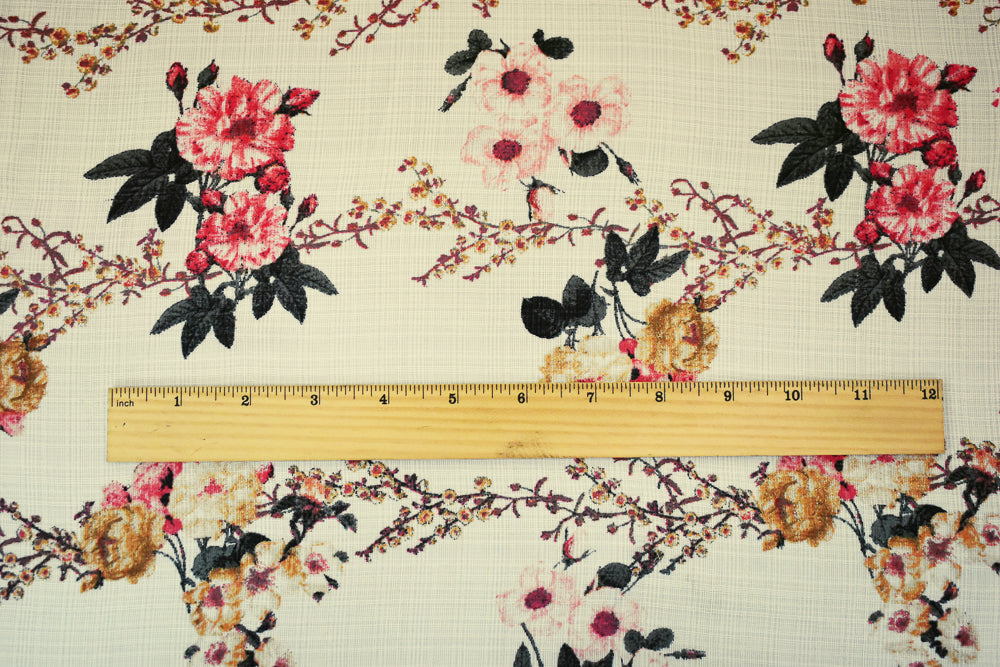 Coral Pink-Light Ivory-Multi Nylon Floral Printed Sheer Woven Fabric