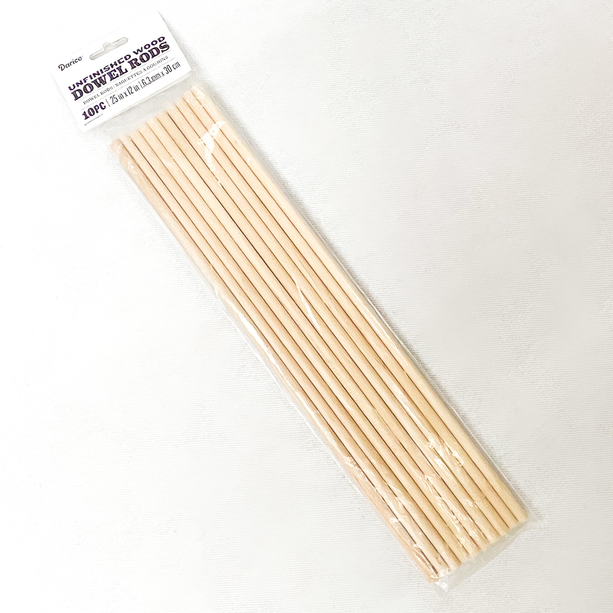 Darice Wooden Unfinished Dowel Rods, 10 piece pack, 1/4"x12" long