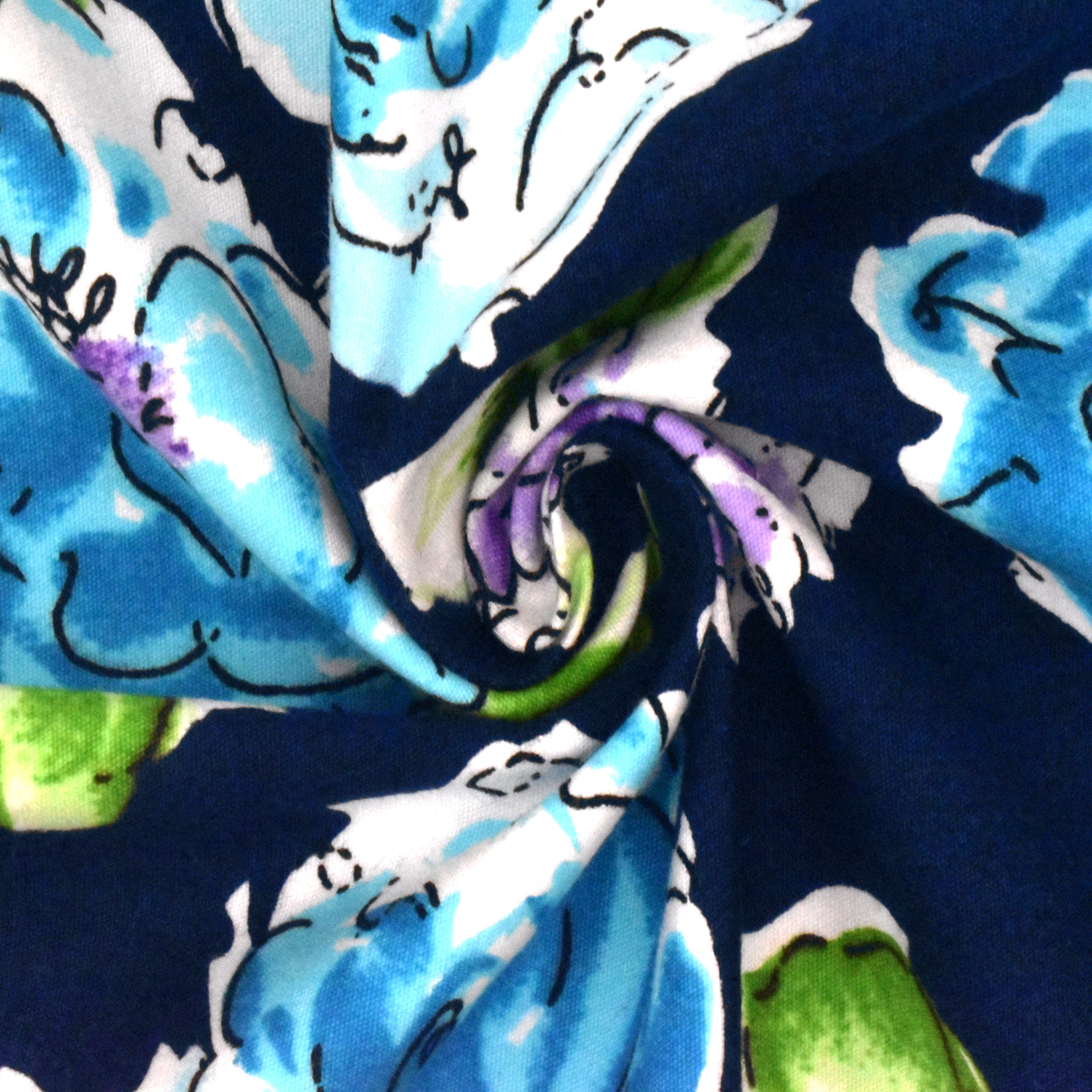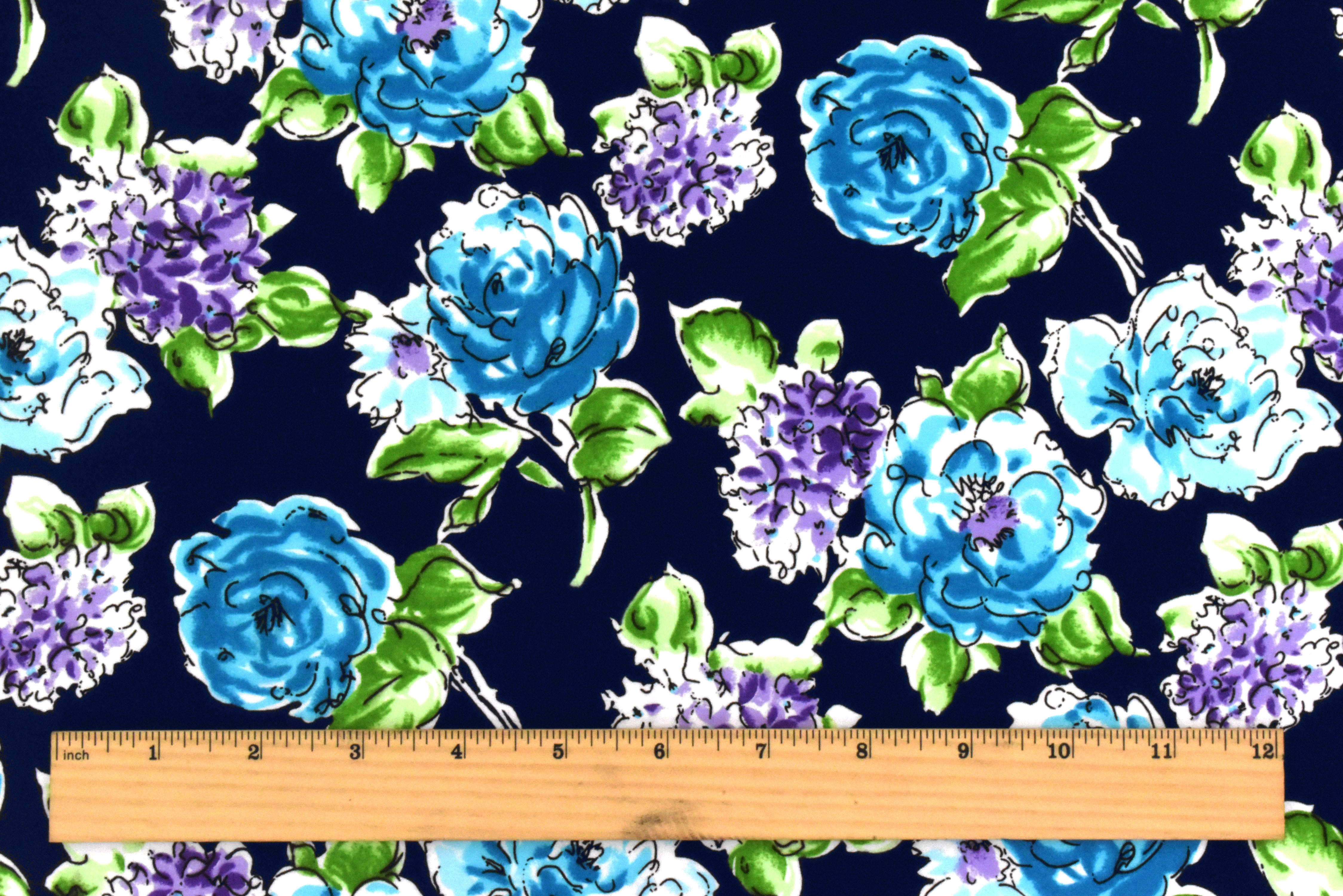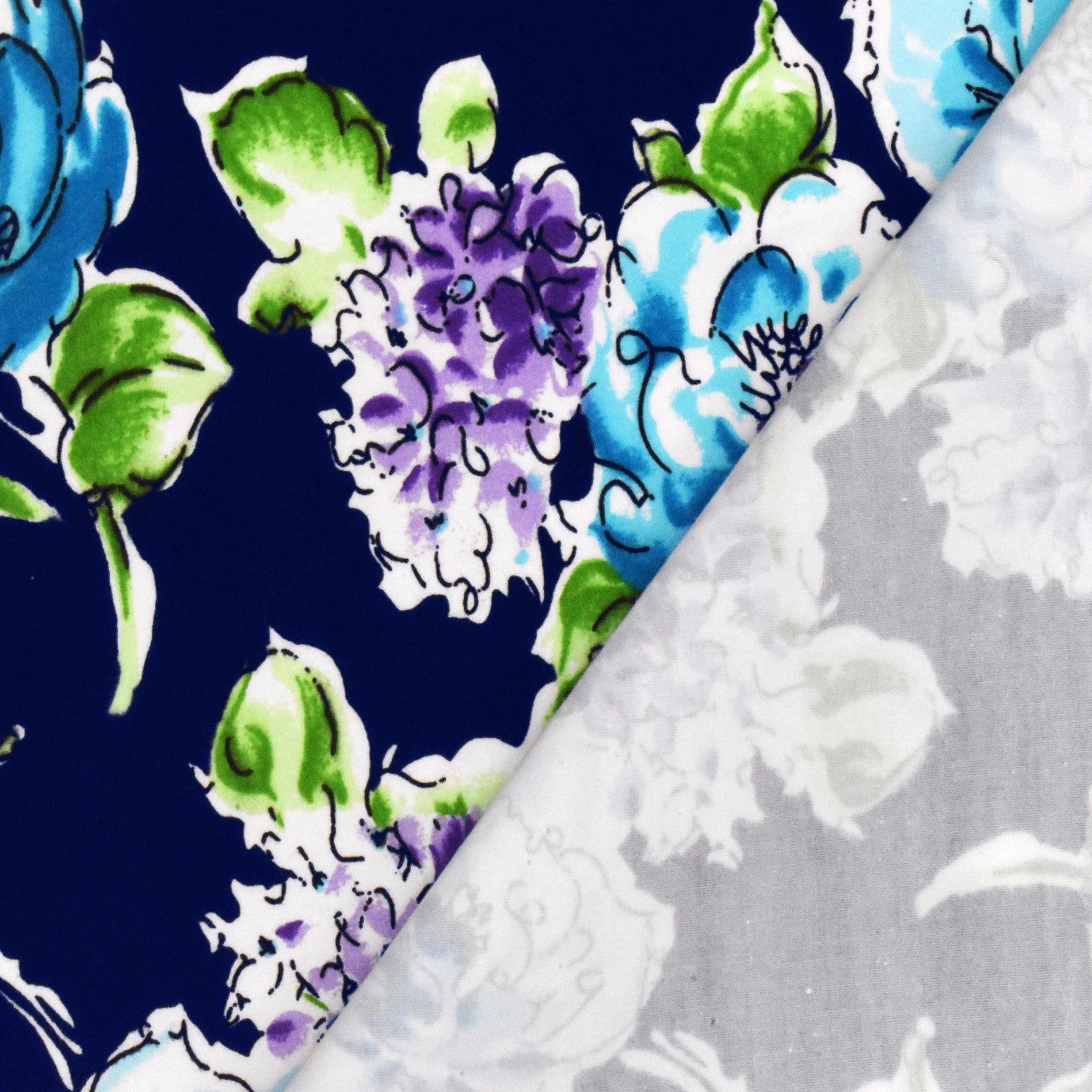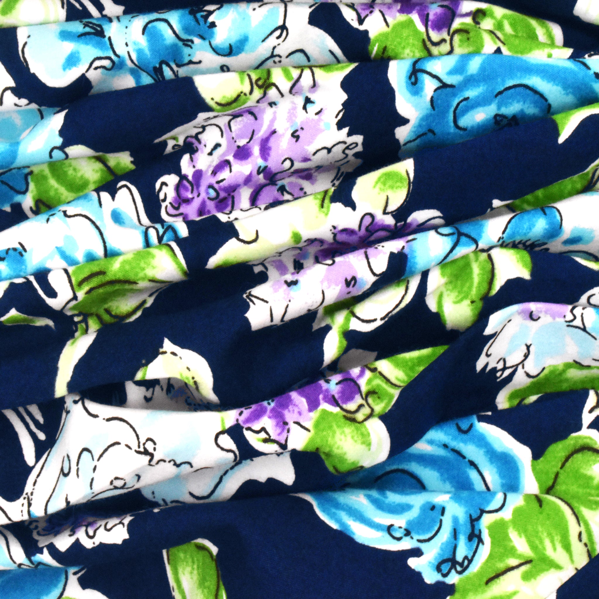 Dark Navy Blue-Multi Floral Printed Cotton Poplin Woven Fabric