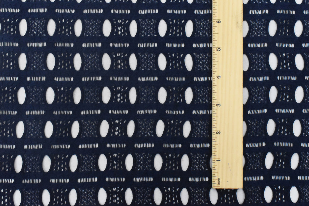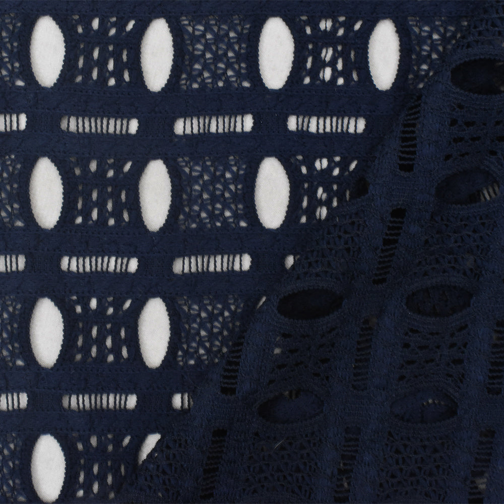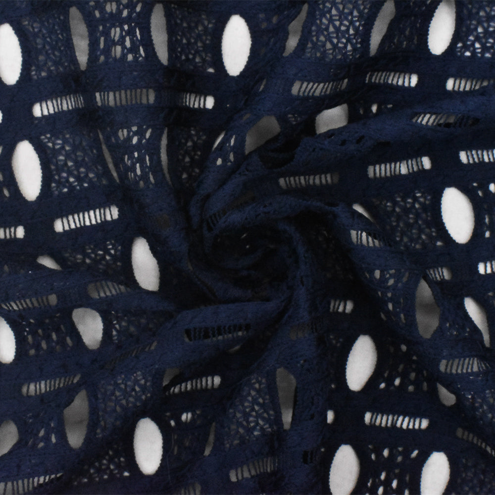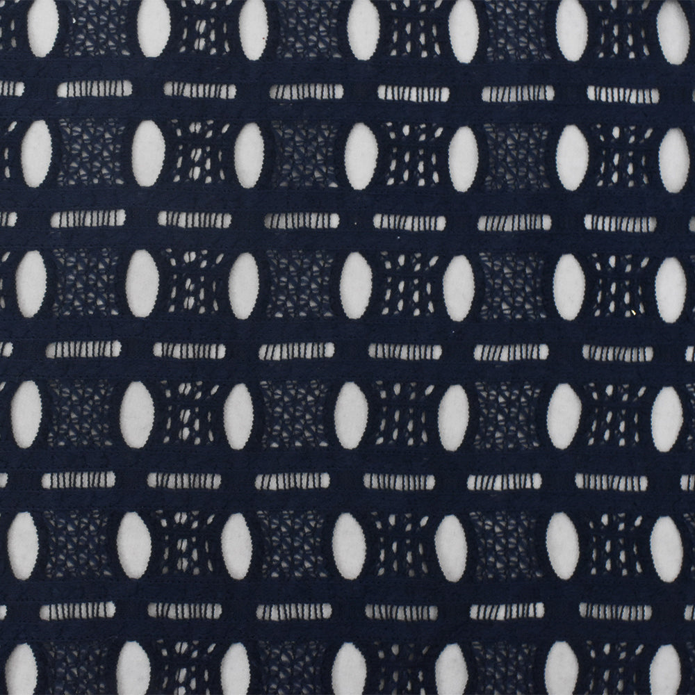 Dark Navy Blue Oval Striped Pattern Poly Crochet Knit Fabric