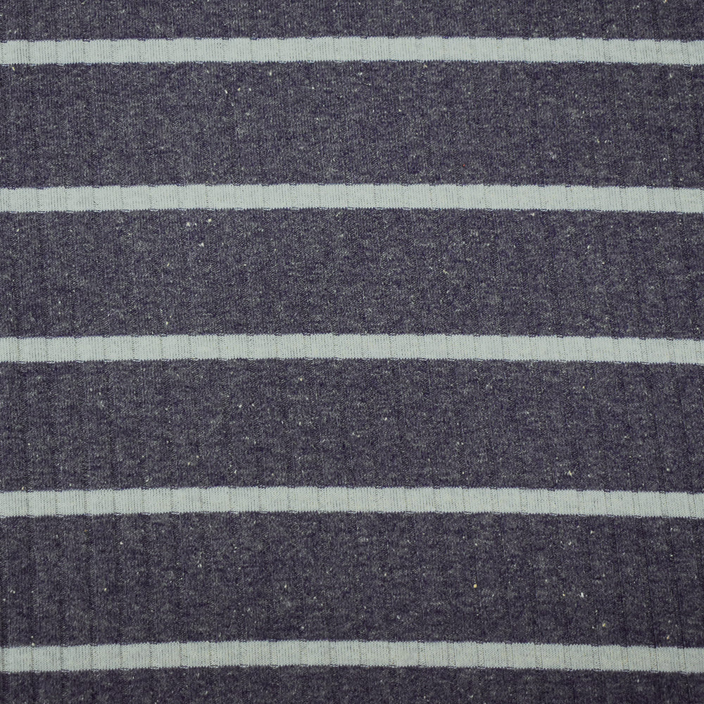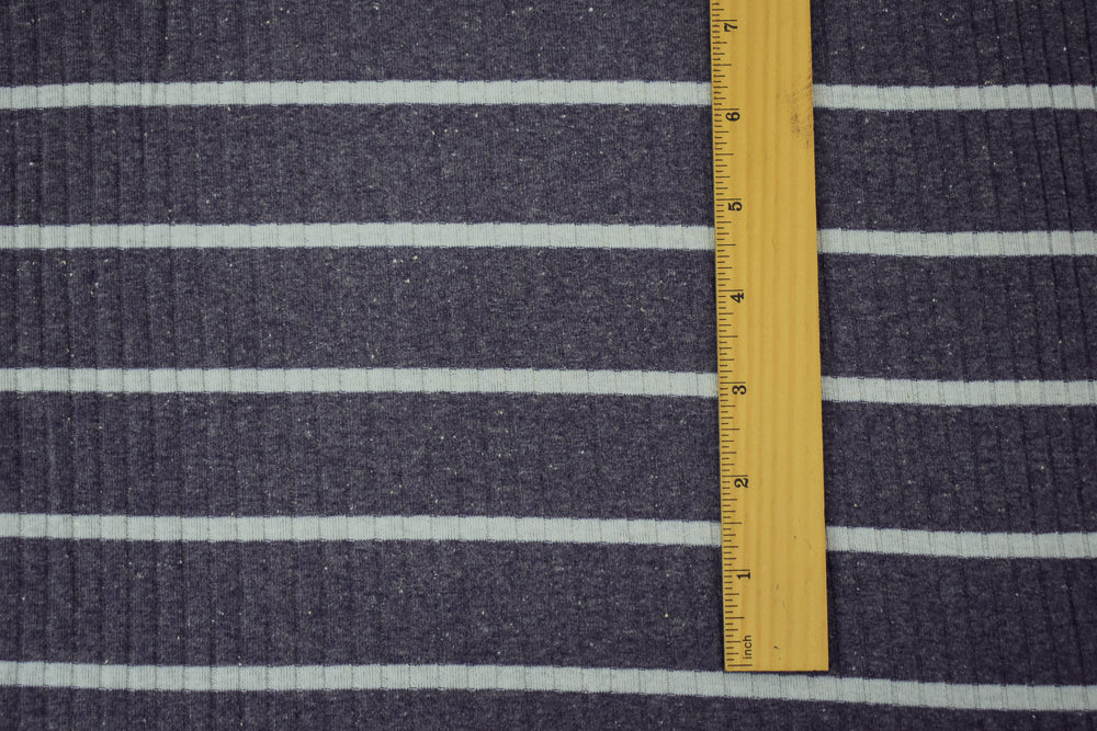 Dusty Blue-Gray Cotton-Poly Stretch Spanx Stripe Rib Knit Fabric