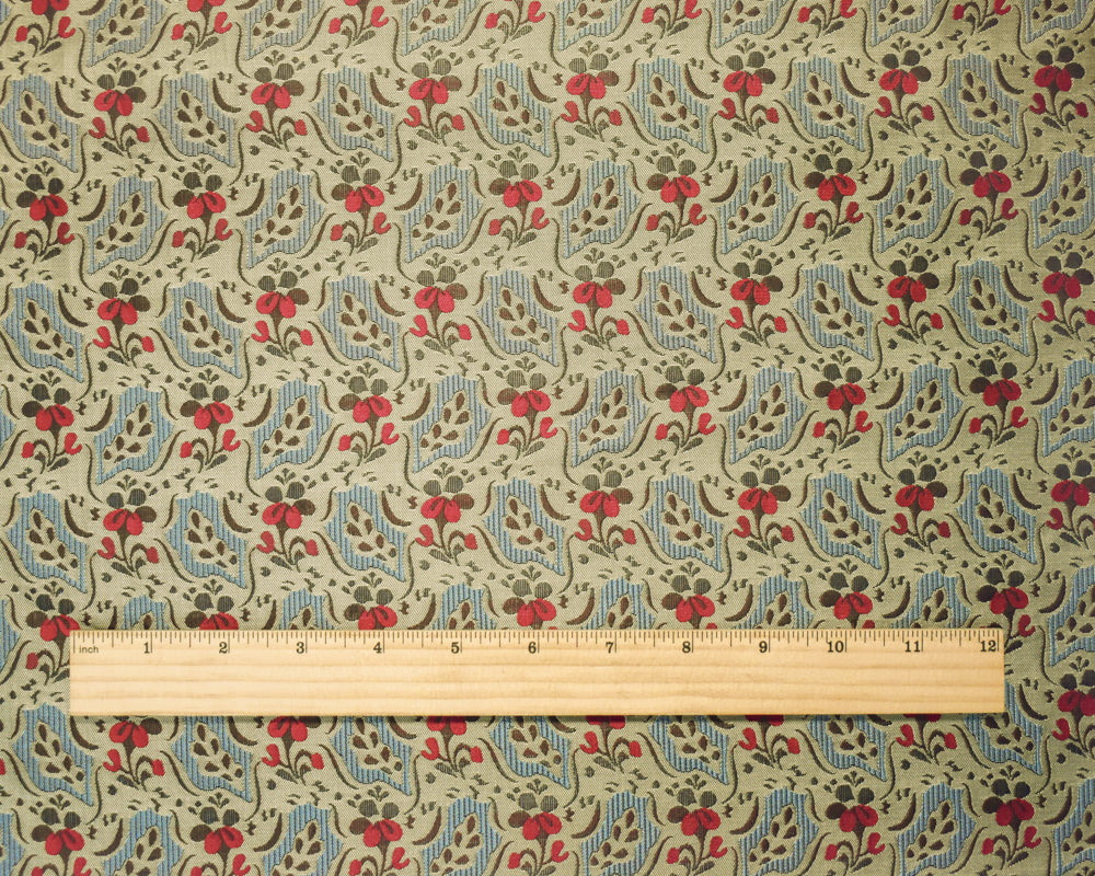 -100% polyester jacquard woven fabric with an abstract shapes and floral elements