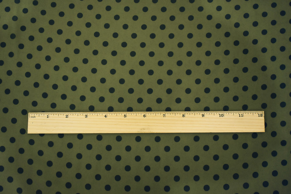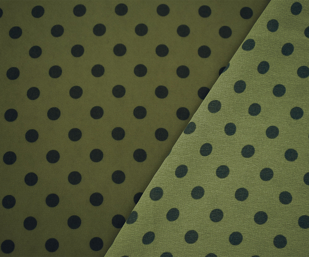 Green-Black Polka Dots Printed Poly Chiffon Woven Fabric