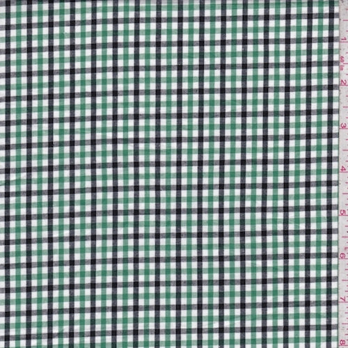 Green/Black/White Check Cotton Shirting Fabric