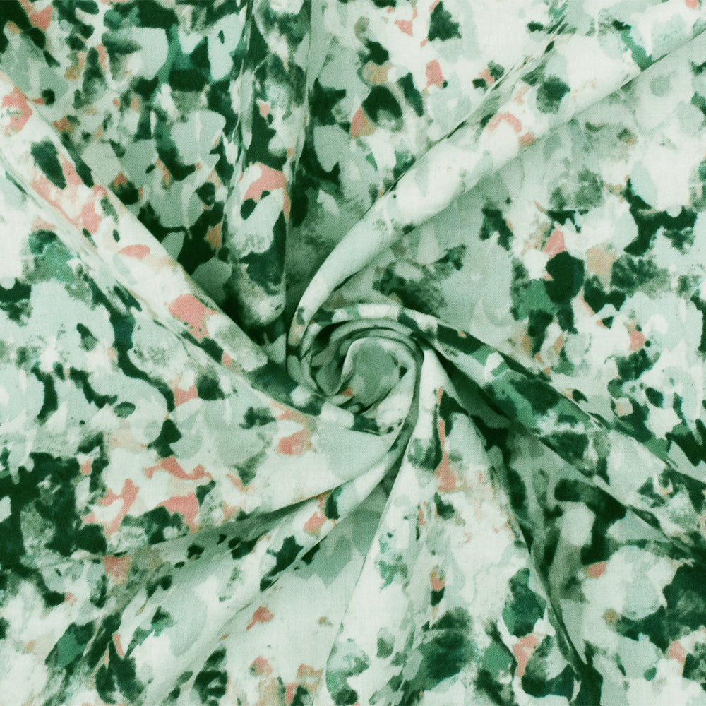 Green-Orange-Multi Abstract Printed Rayon Challis Woven Fabric