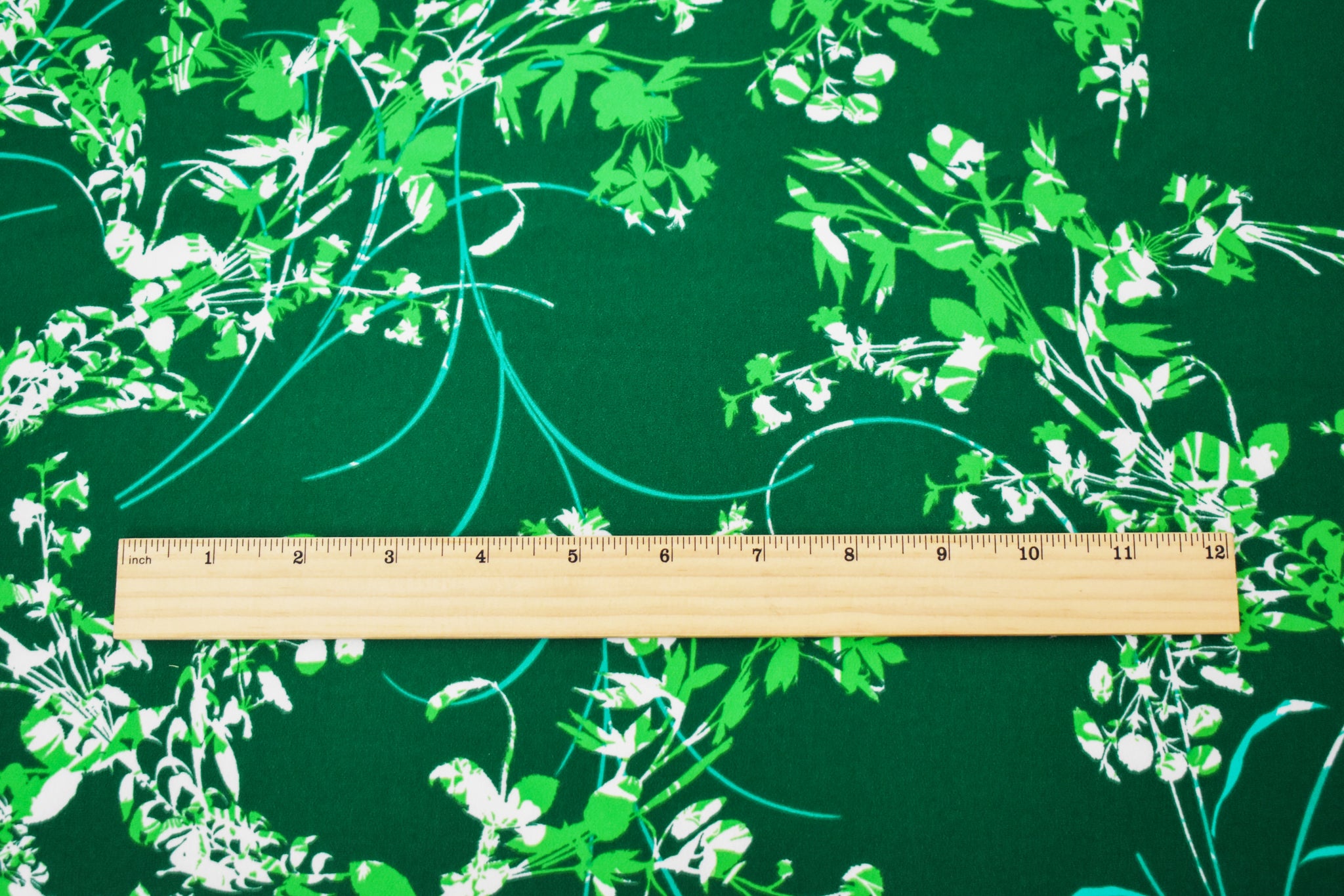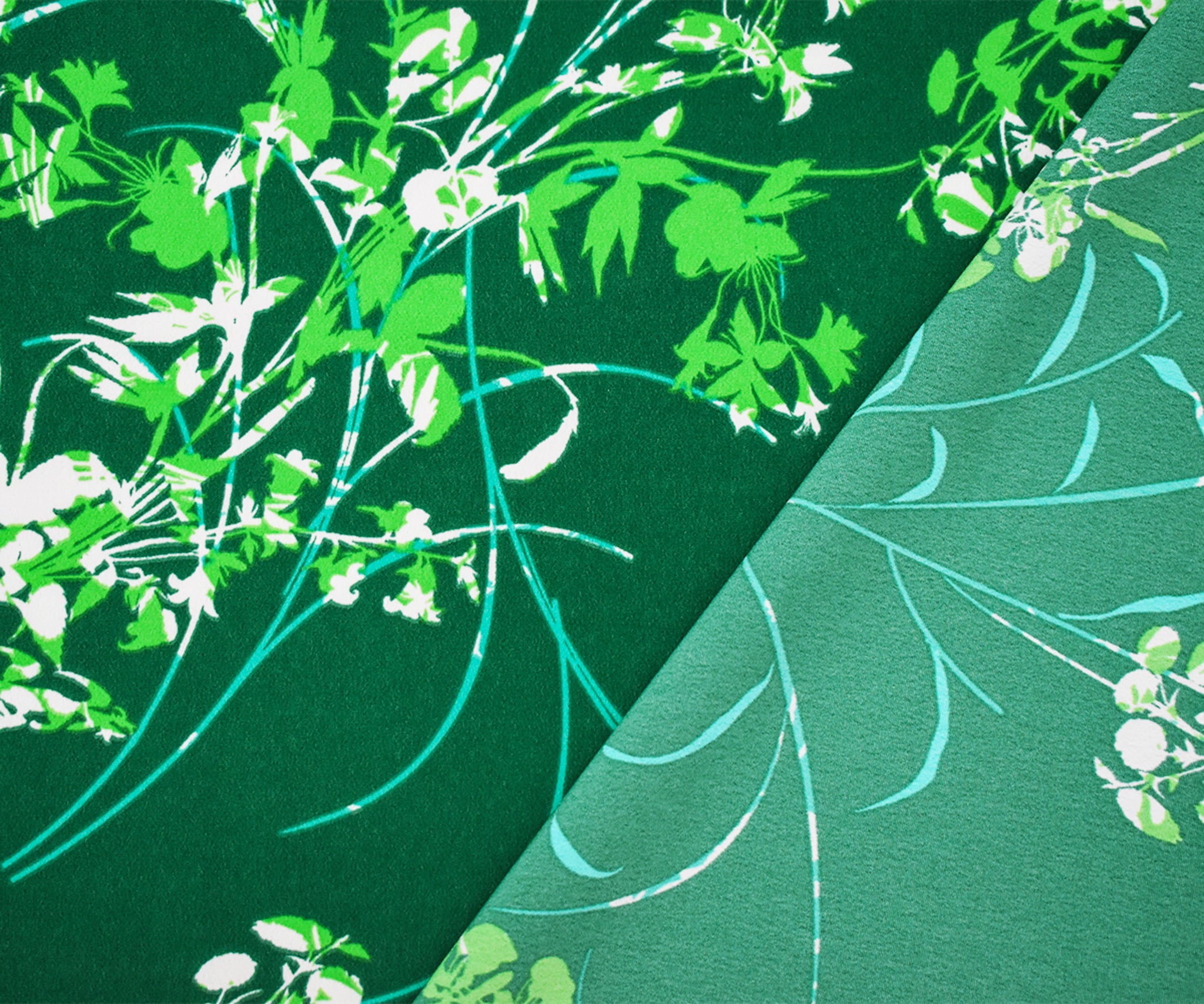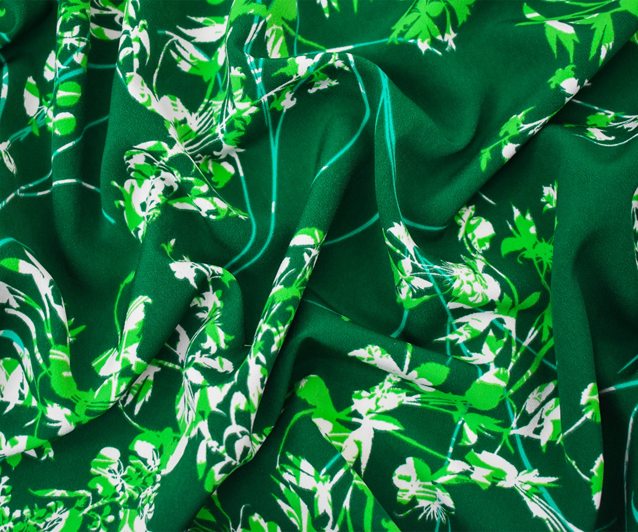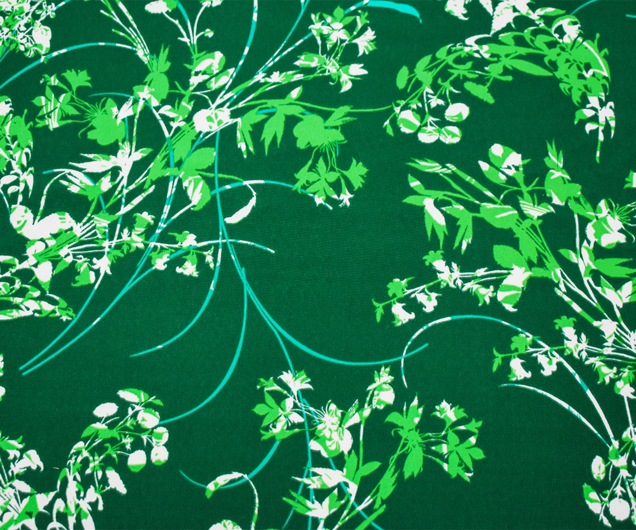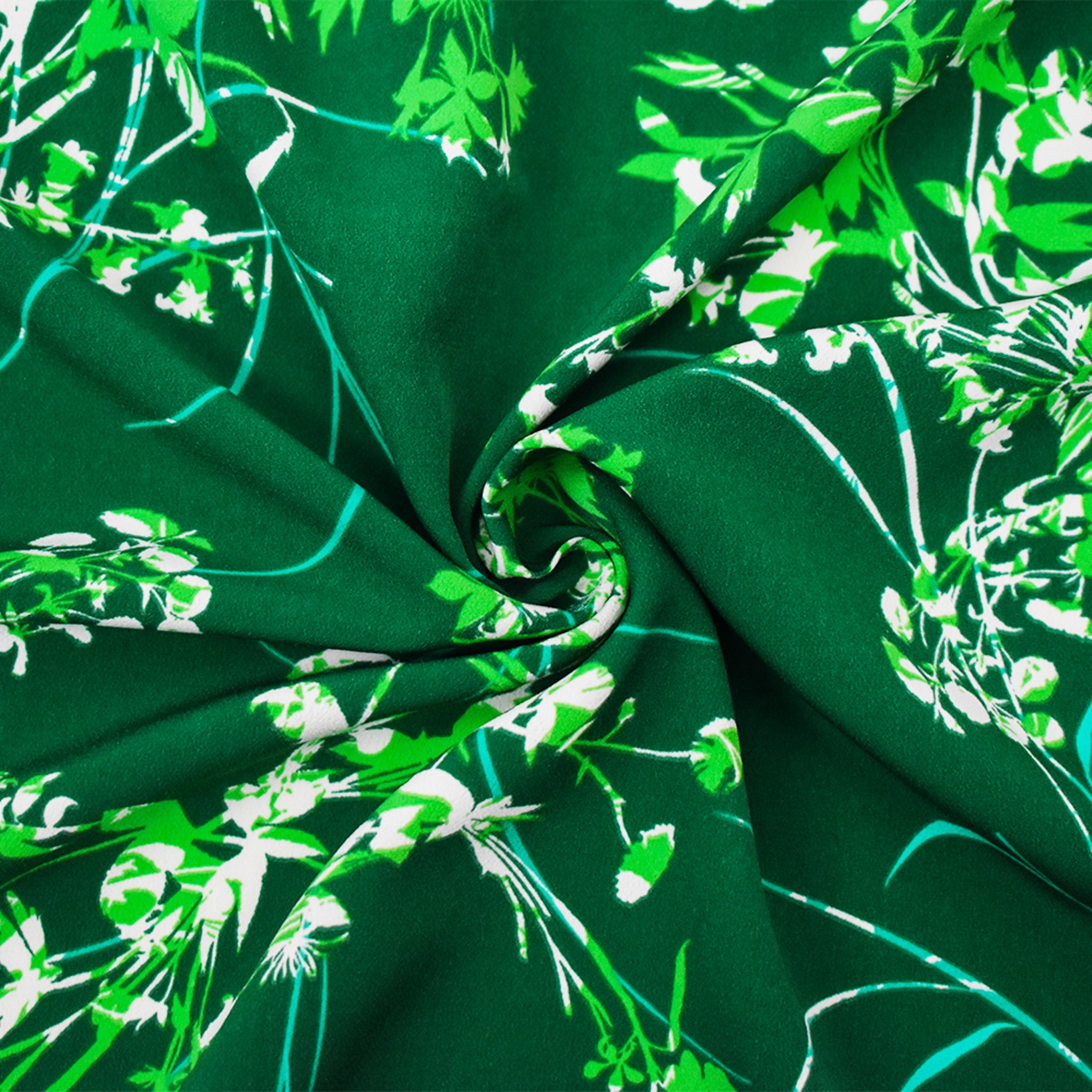 Green-Teal-Multi Polyester Leaves Printed Faille Woven Fabric