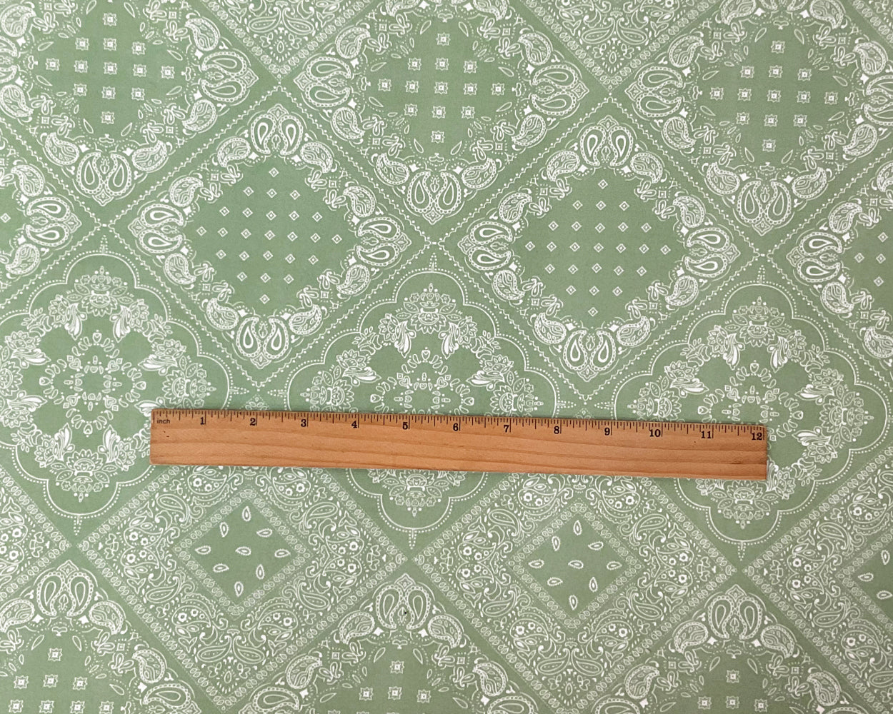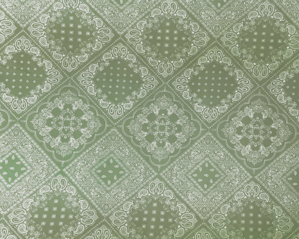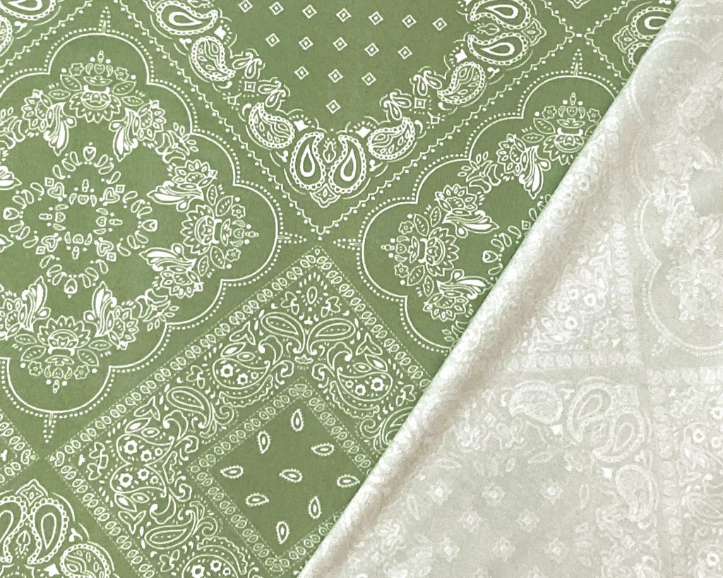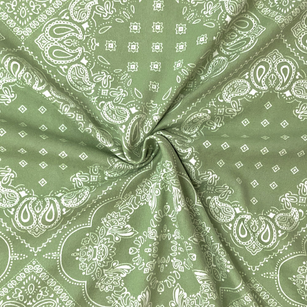 Green-White Poly Spandex Stretch Paisley Floral Print DB Jersey Knit Fabric