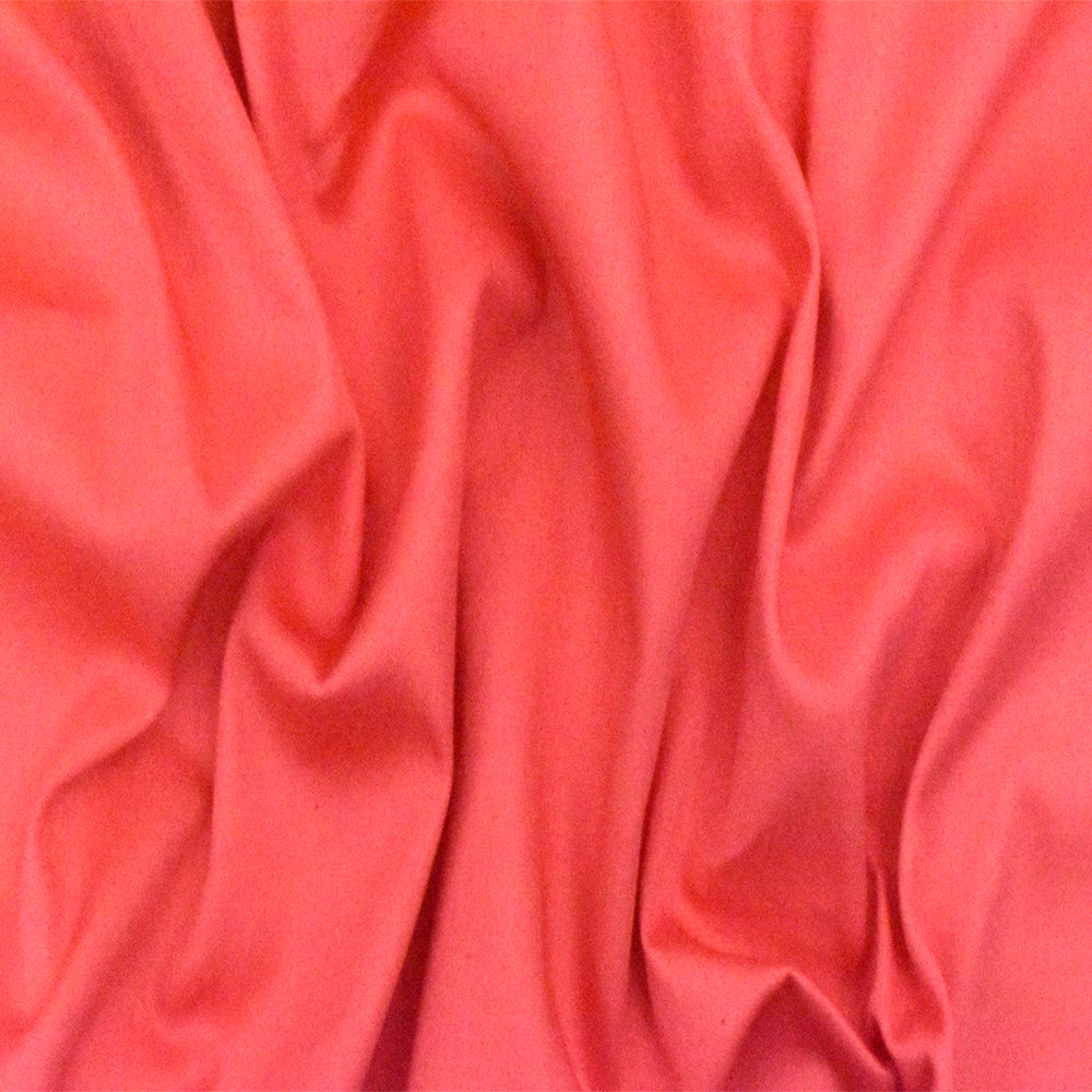 Hot Coral Red Solid Stretch Cotton Sateen Woven Fabric