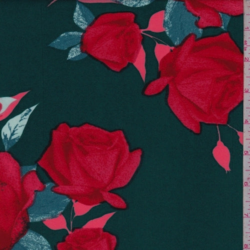 ITY Emerald/Red Rose Jersey Knit Fabric