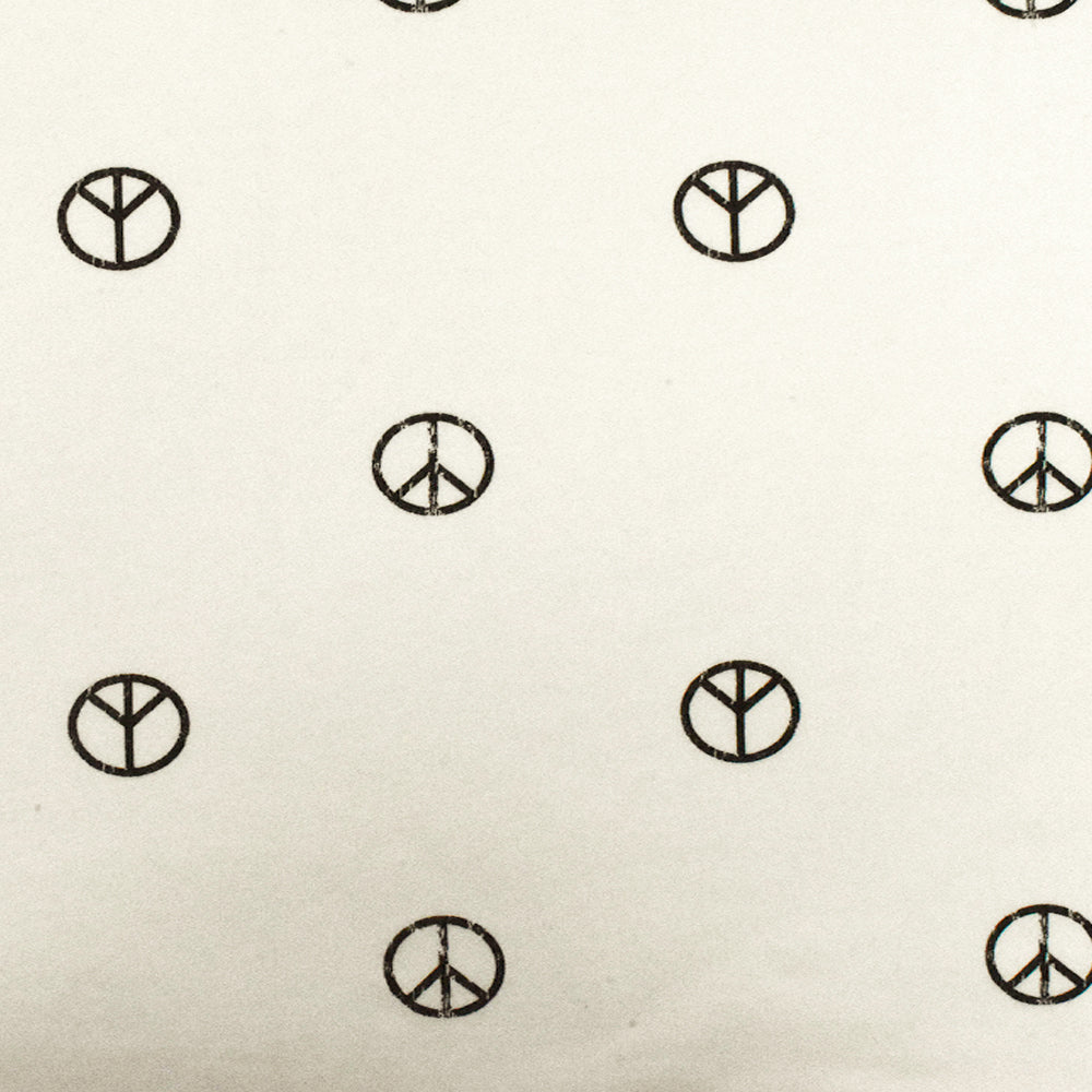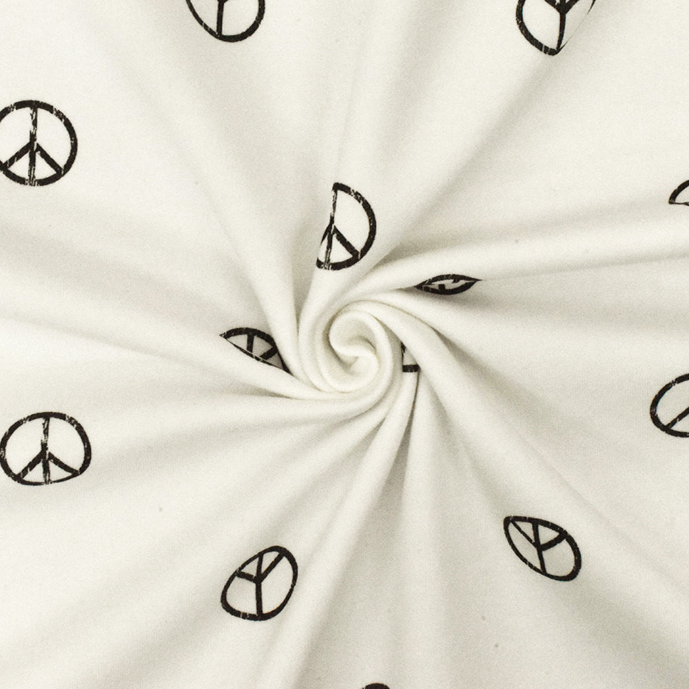 Ivory-Black Peace Printed Stretch Cotton French Terry Brush Fleece Fabric