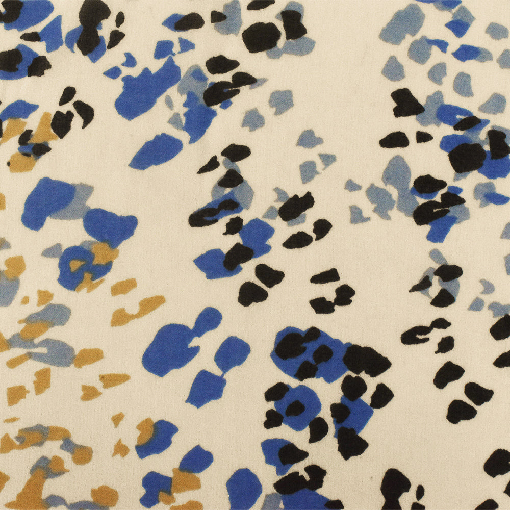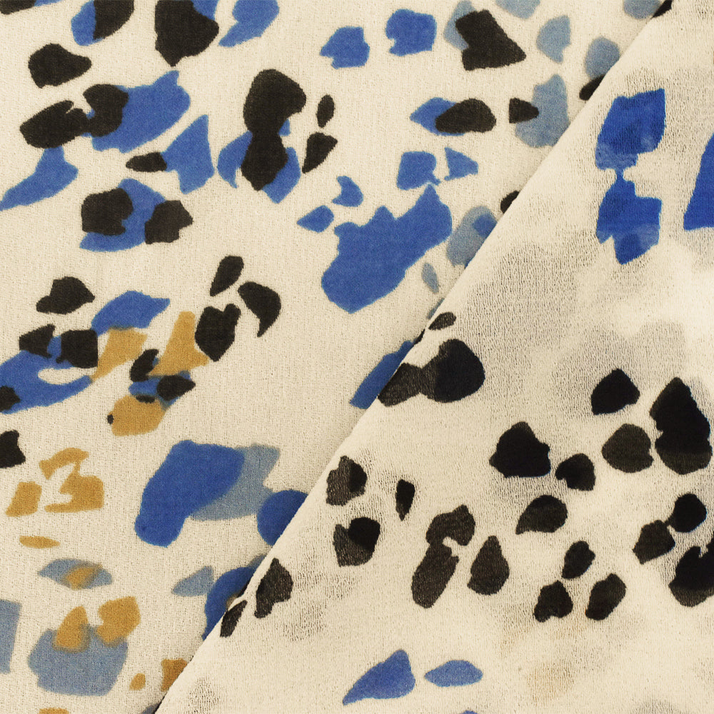 Ivory-Blue-Multi Abstract Printed Poly Chiffon Woven Fabric
