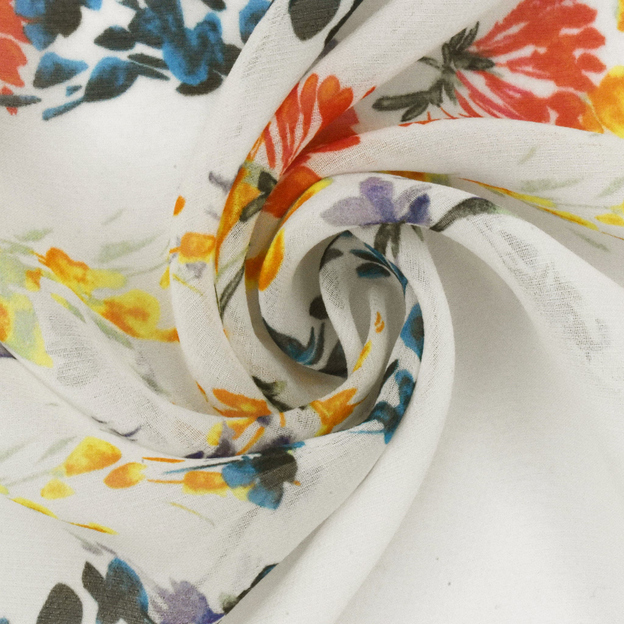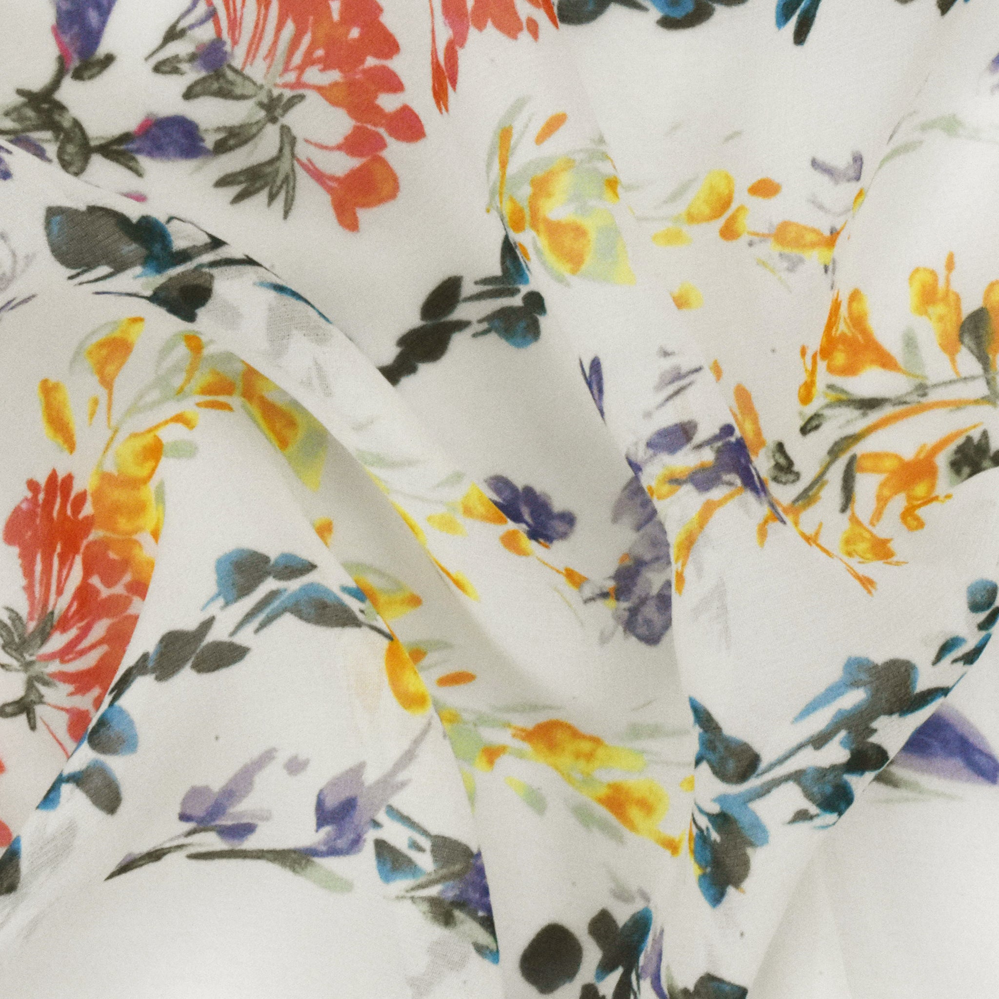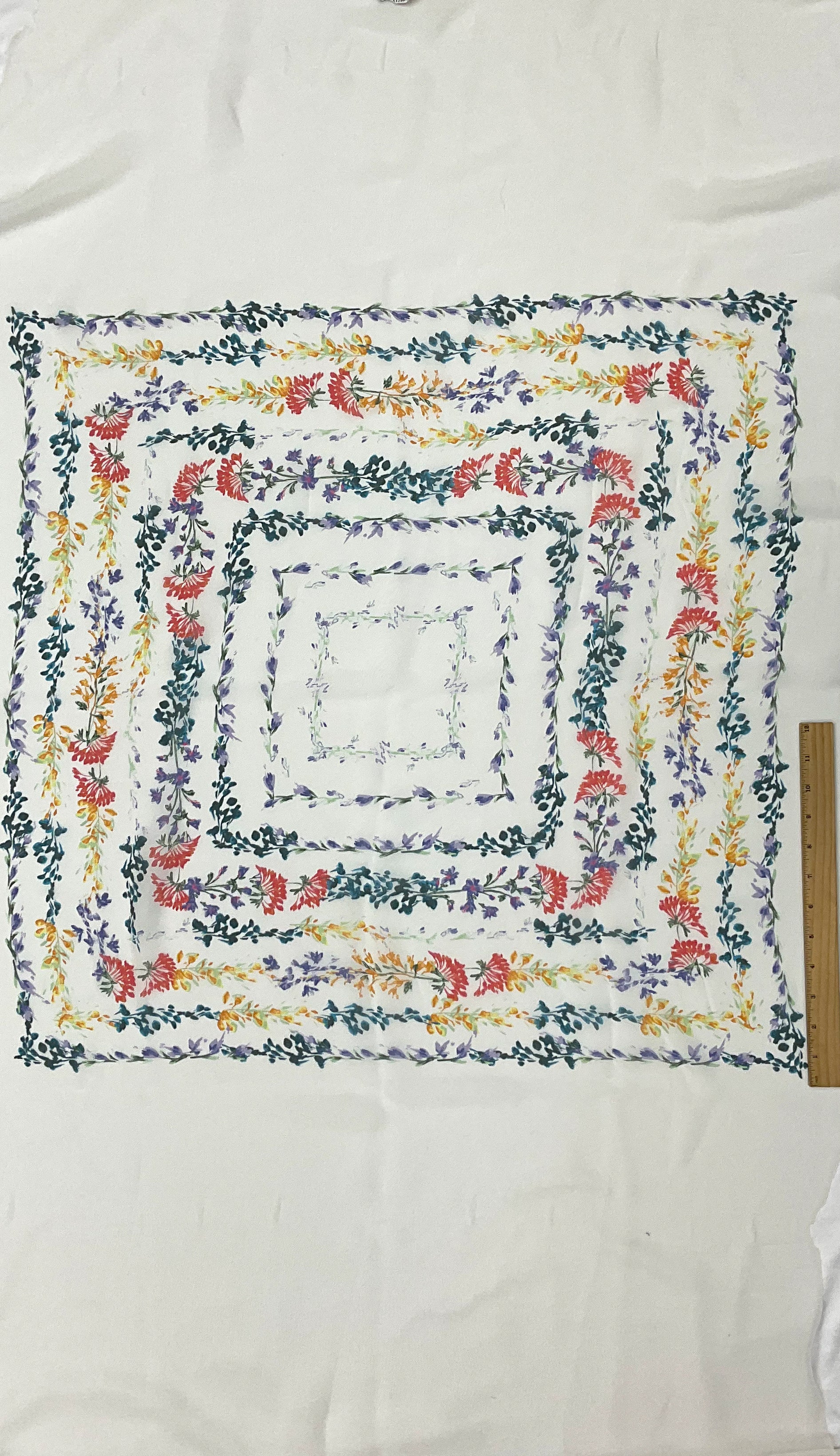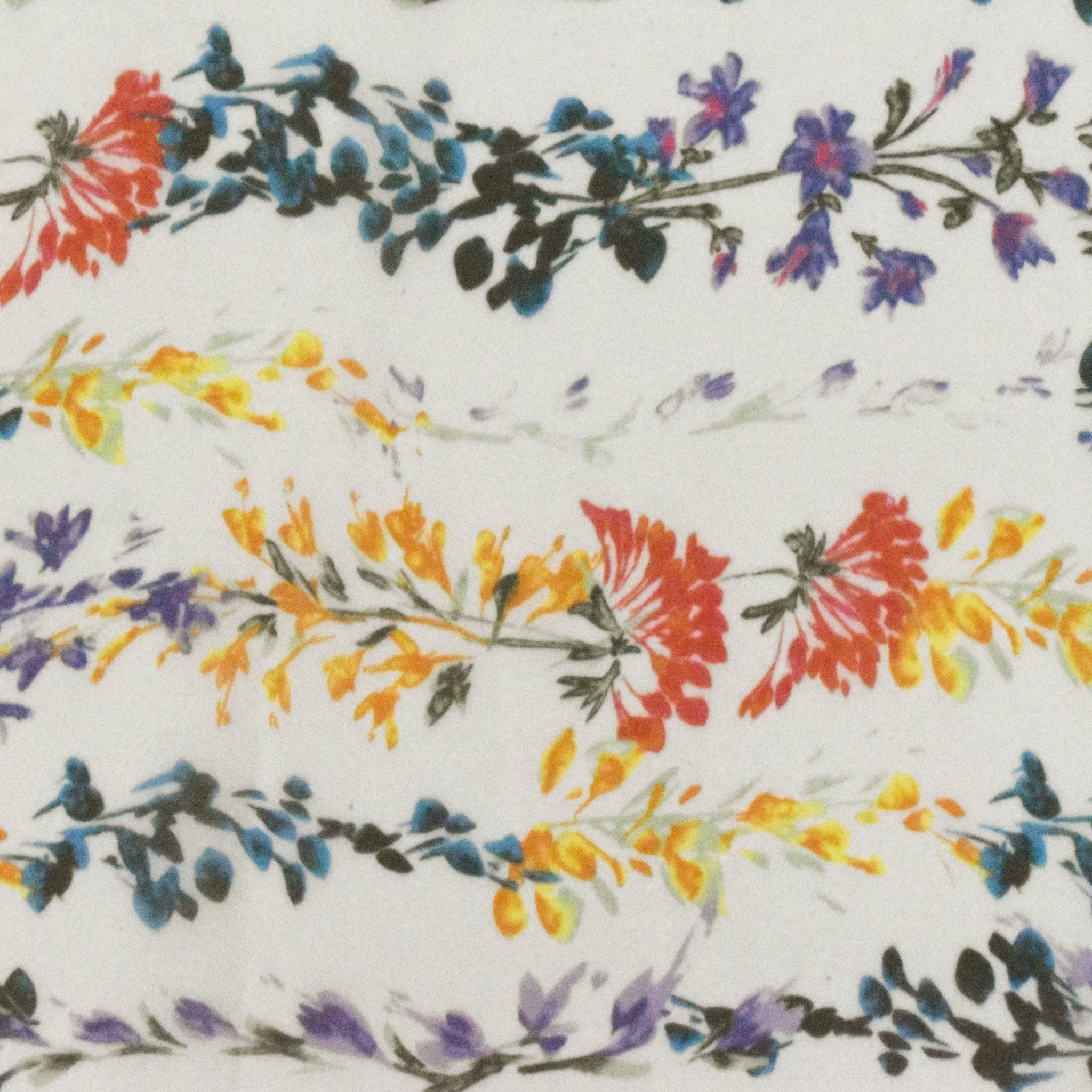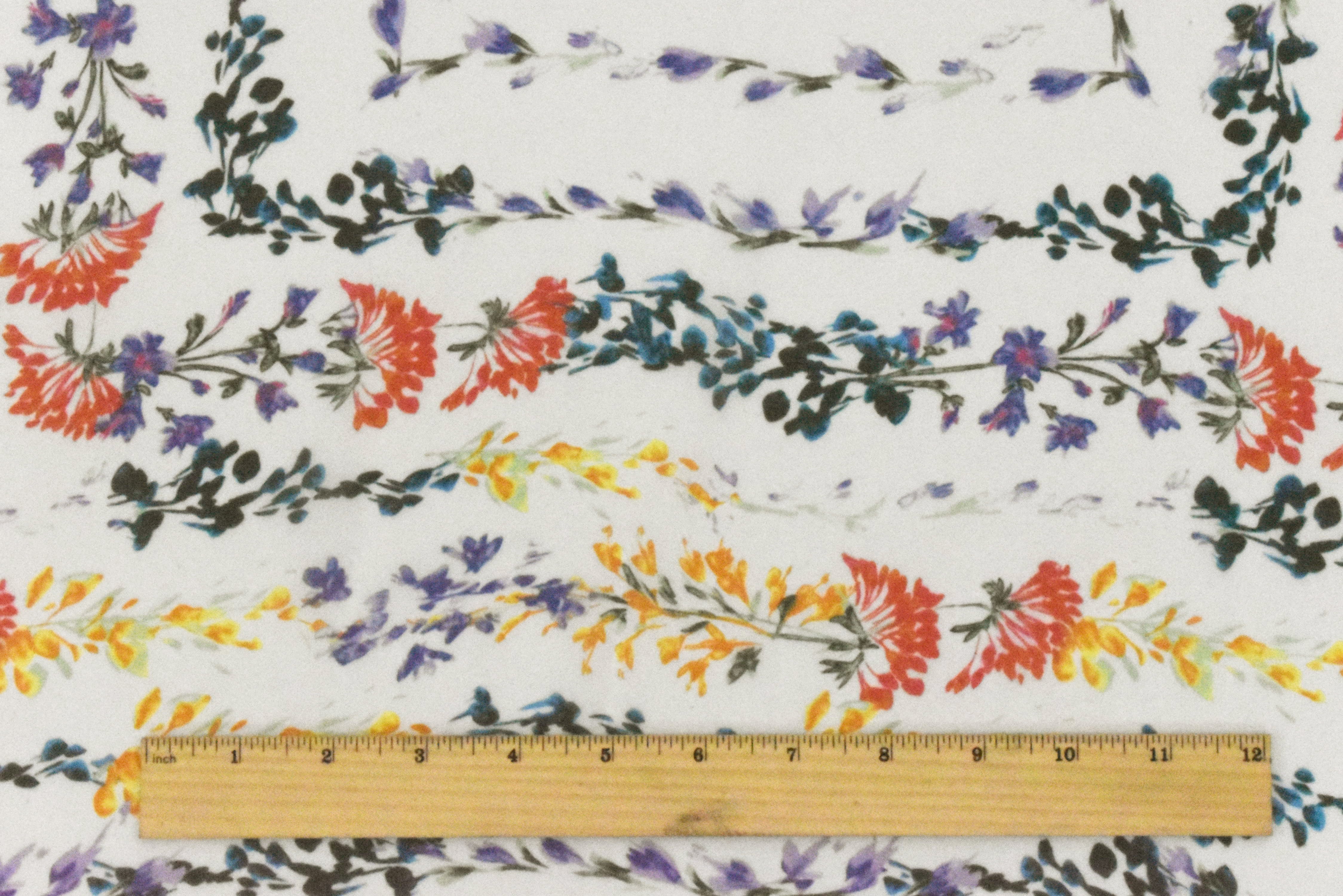 Ivory-Lavender-Multi Floral Border Frame Printed Silk Chiffon Fabric