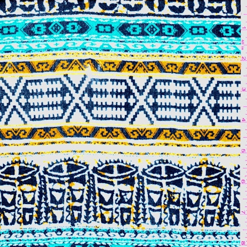 Ivory/Navy/Orange Deco Stripe Crepon Fabric