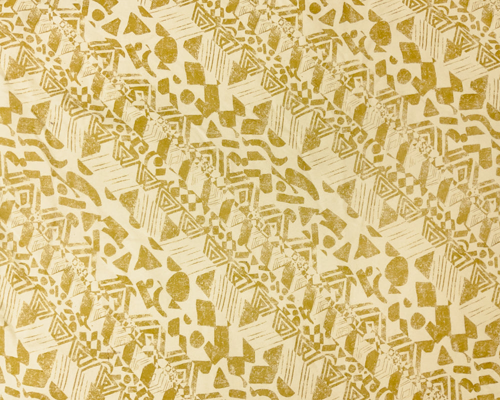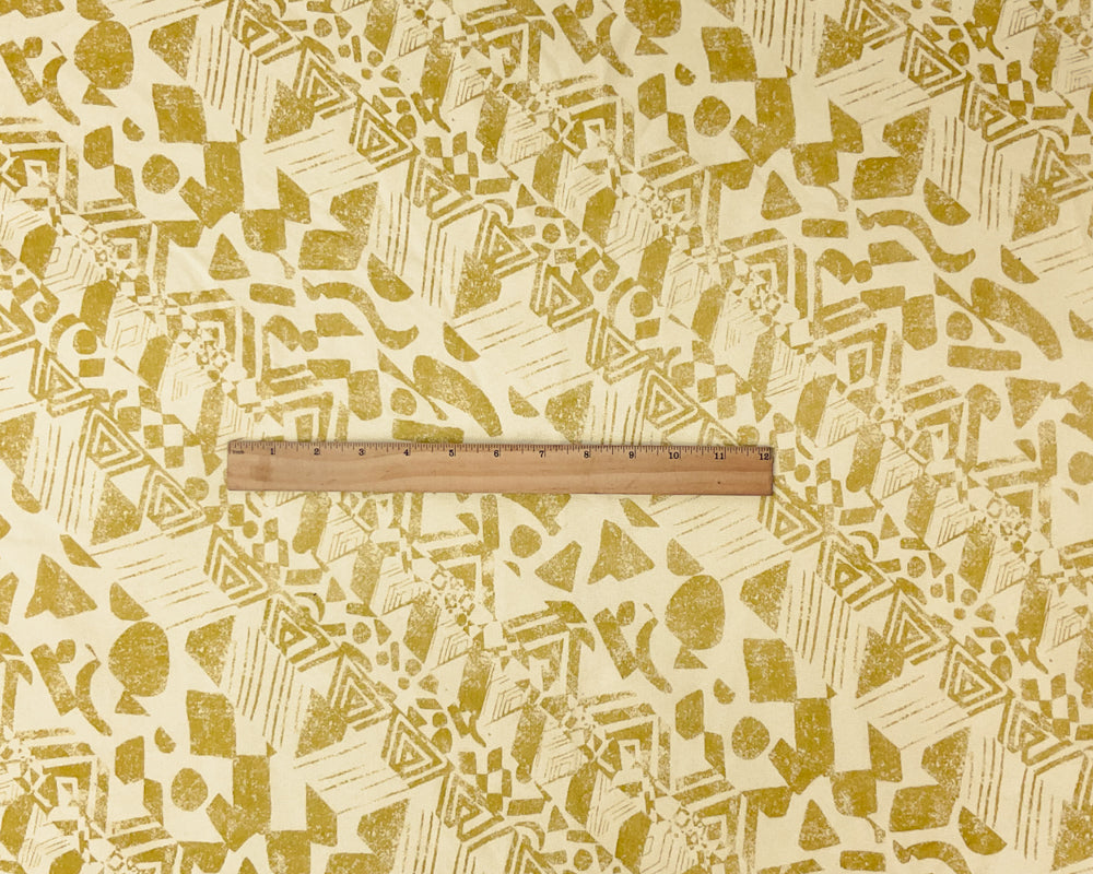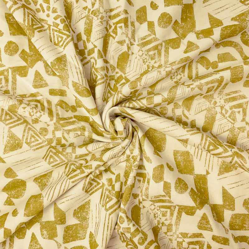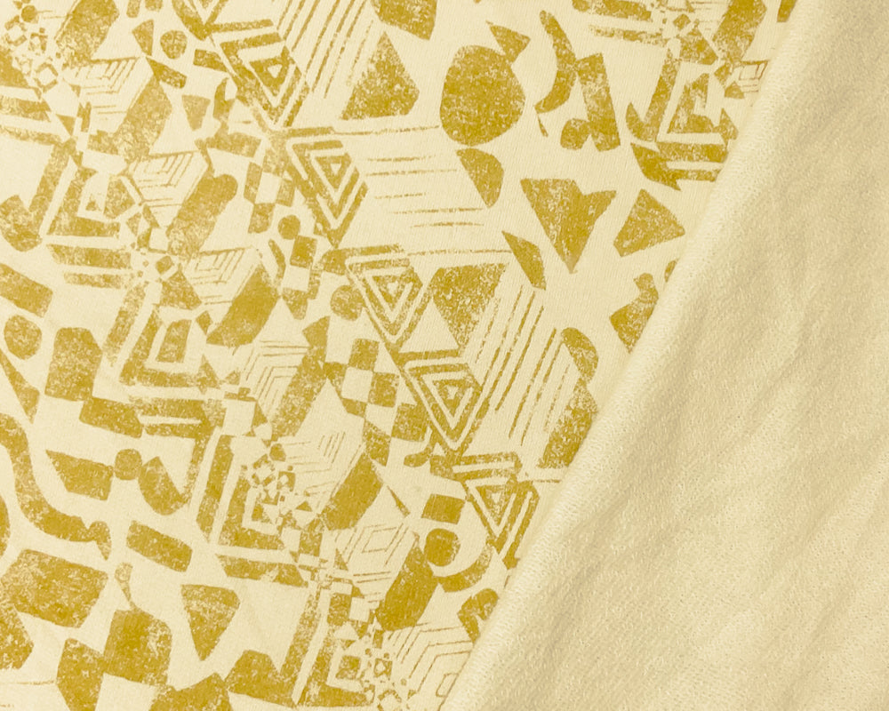 Ivory-Yellow Cotton Aztec Printed French Terry Knit Fabric