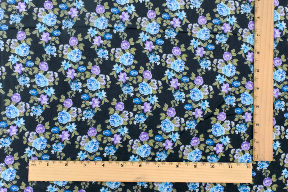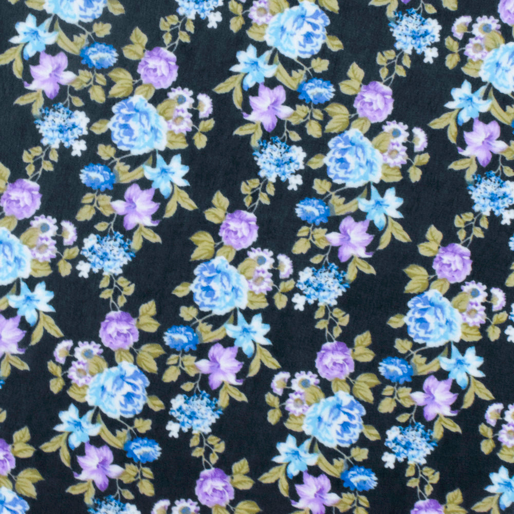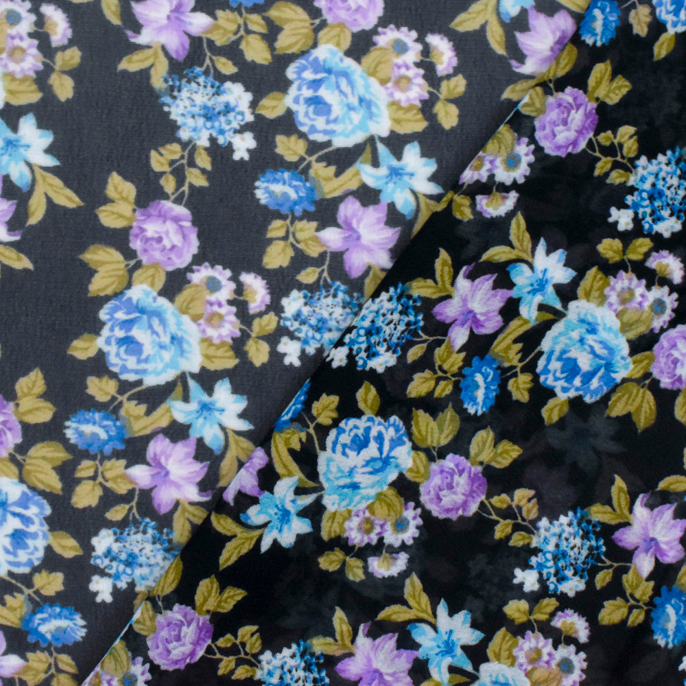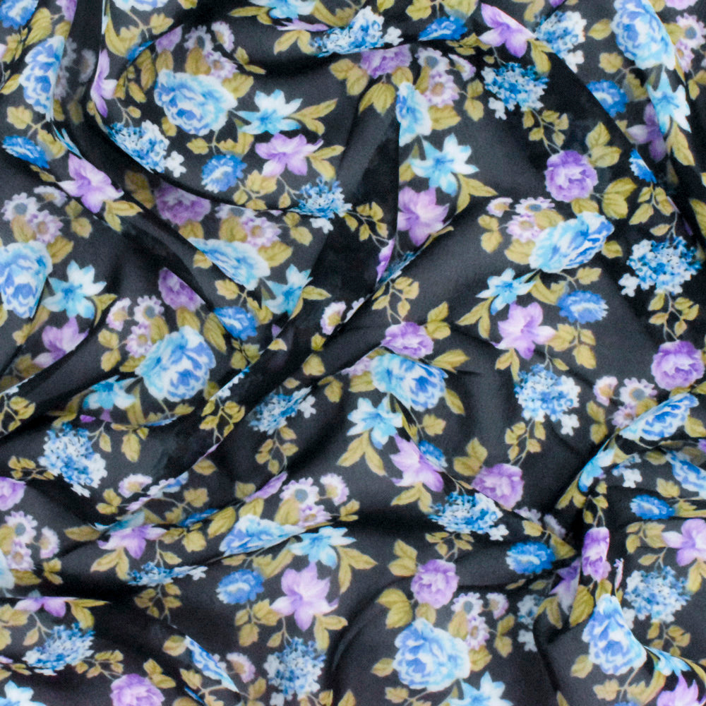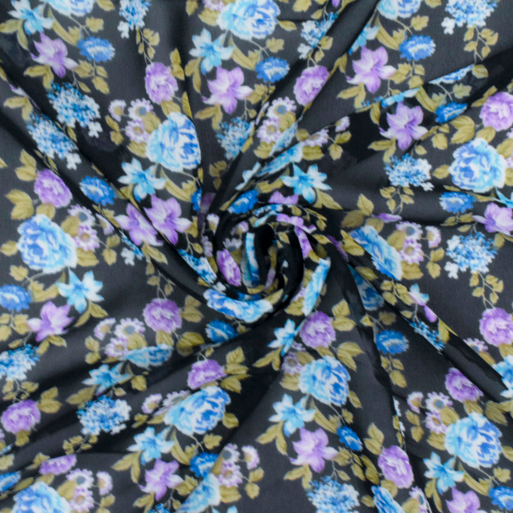 Jet Black-Blue-Multi Floral Printed Polyester Chiffon Woven Fabric