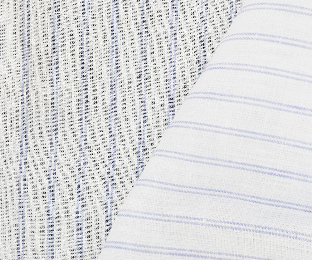 -150 gsm Spence Bryson Katesbridge 100% Linen yarn dyed striped slub woven with a soft sanforised finish. Line if needed. Made in Ireland.