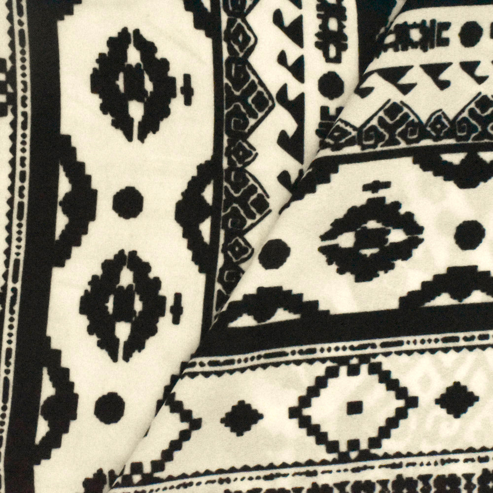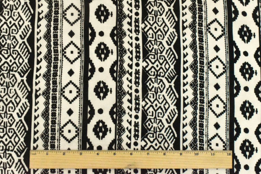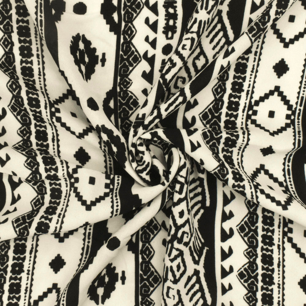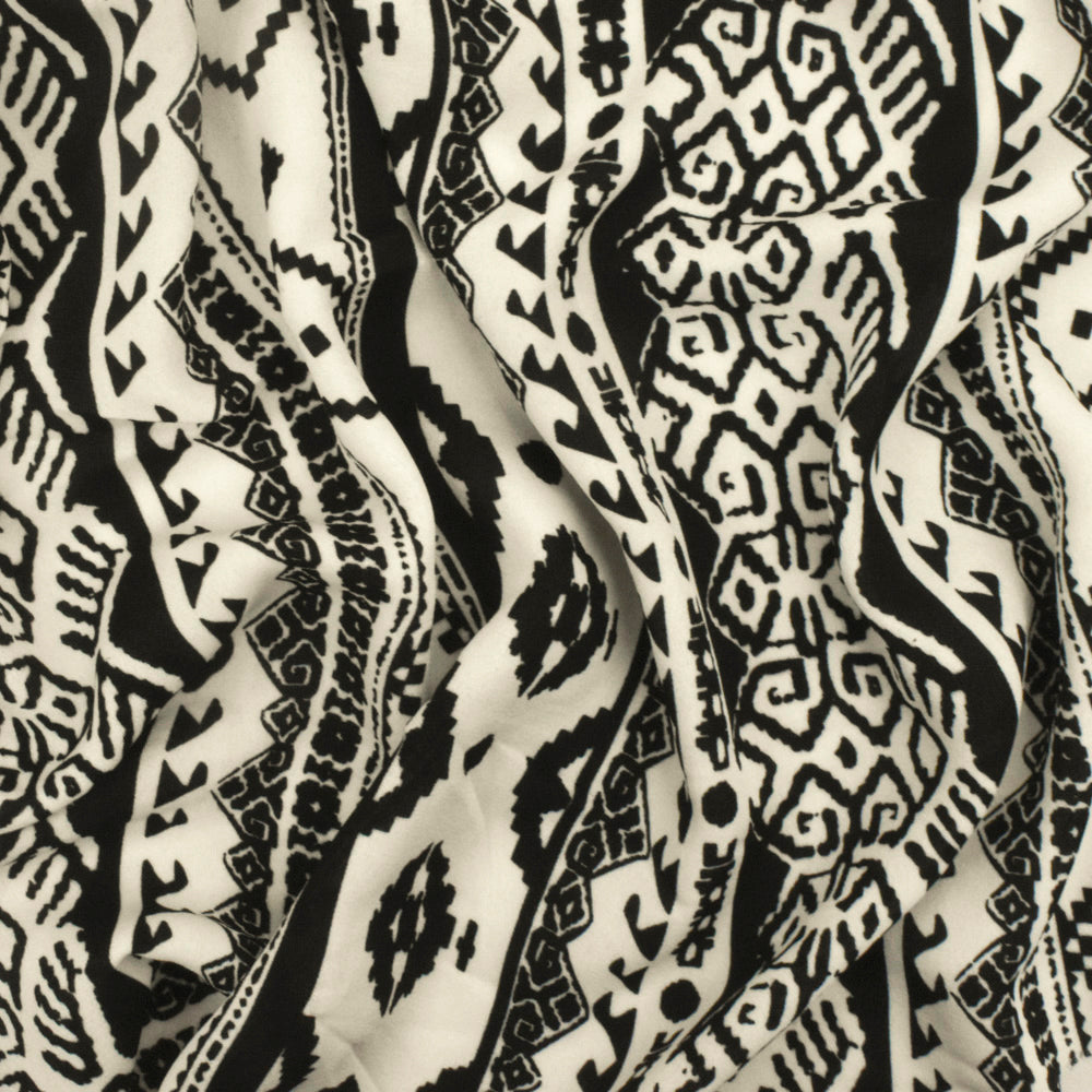 Milk Ivory-Black Aztec Printed Polyester Georgette Woven Fabric