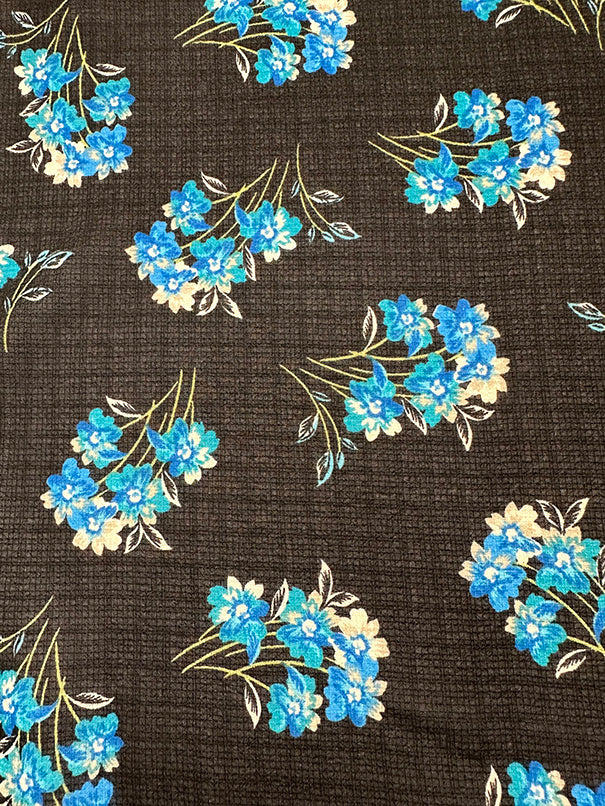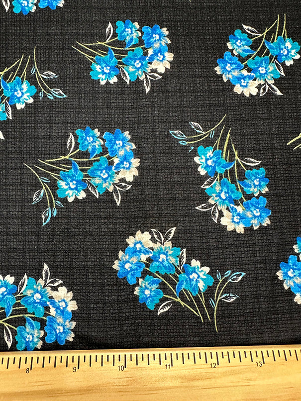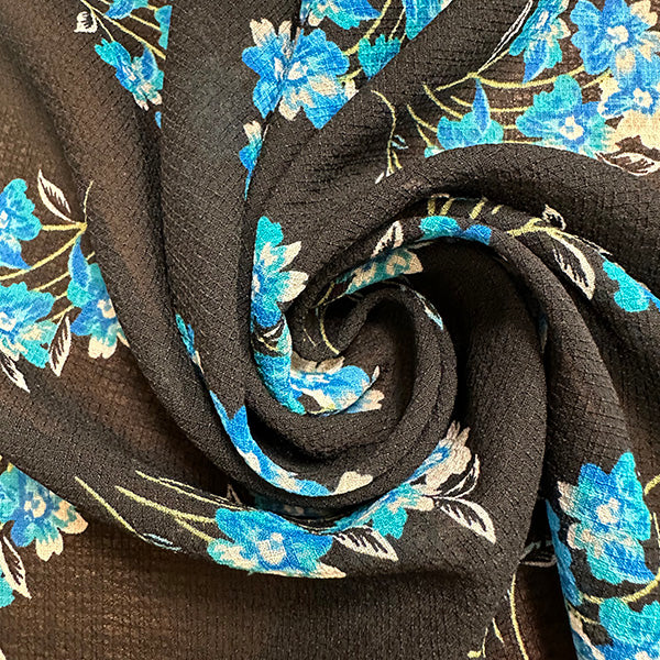 Navy Blue Floral Print Ripstop Look Poly Chiffon Fabric