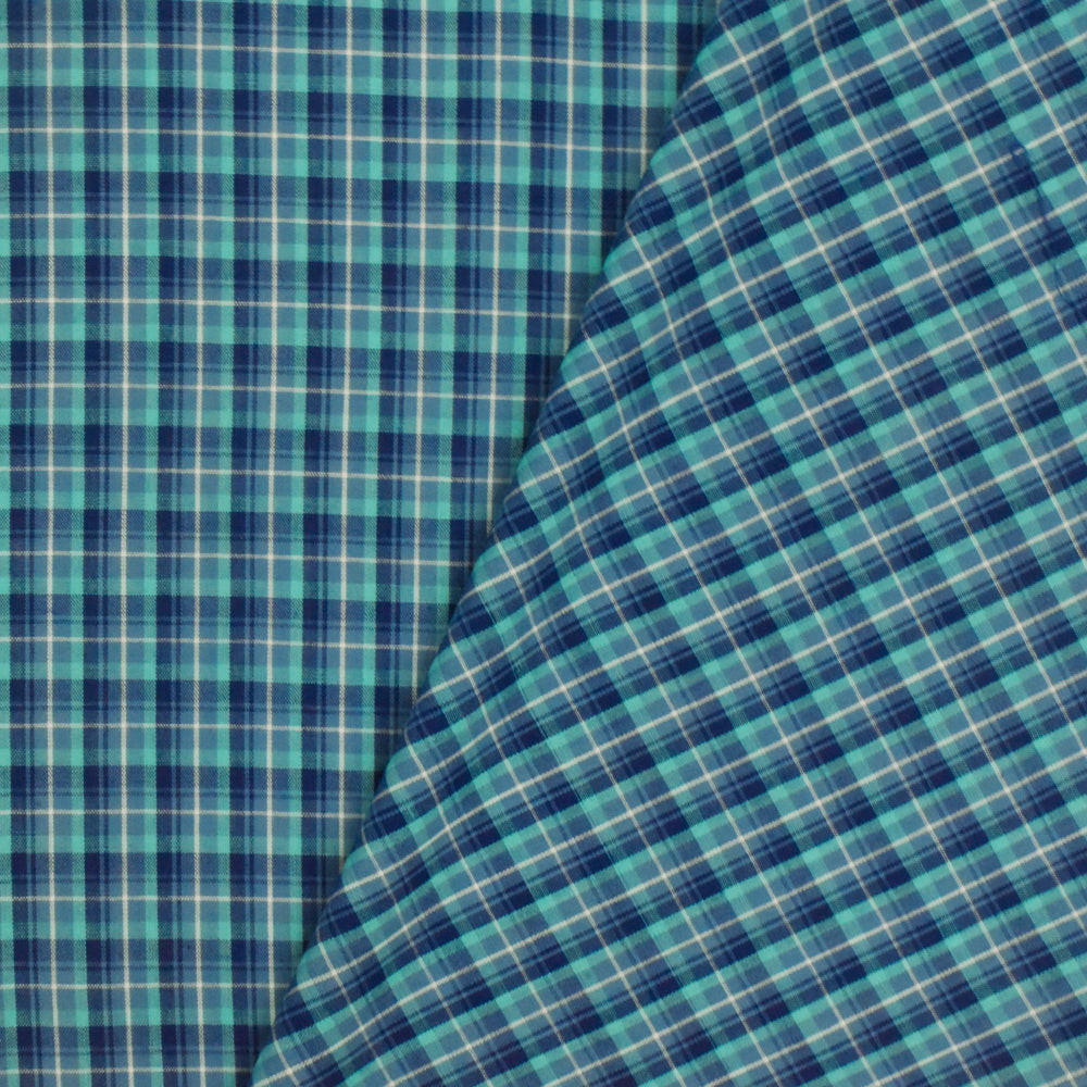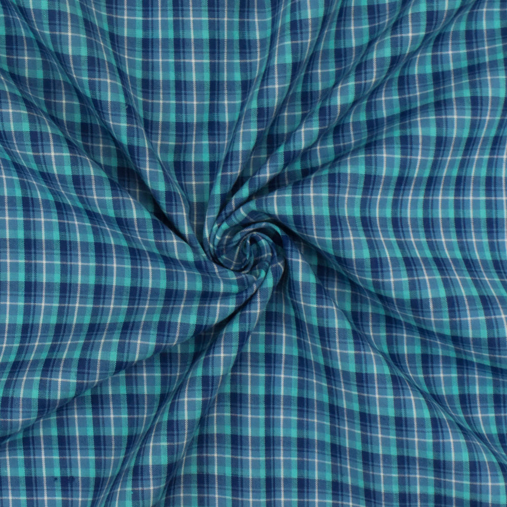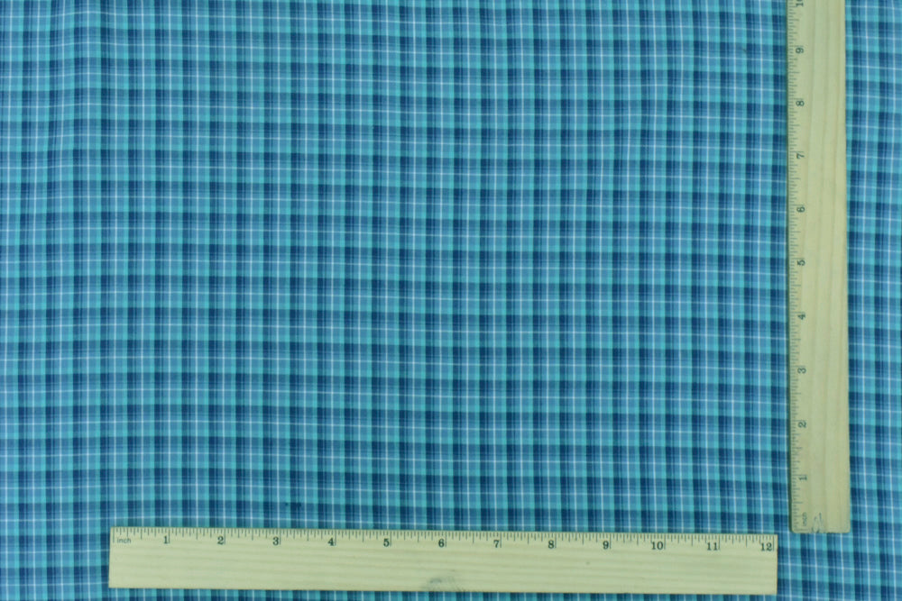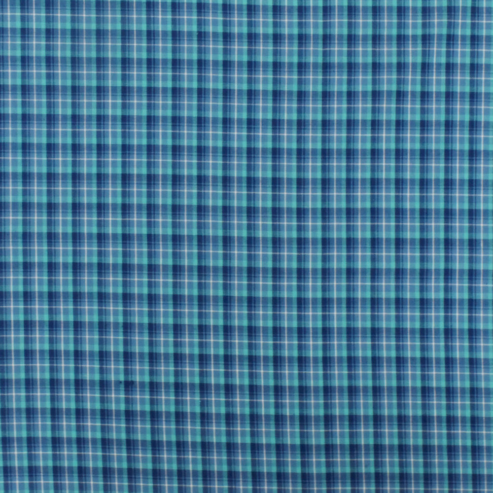 Navy Blue-Teal-Multi Plaid Cotton-Polyester Madras Woven Fabric