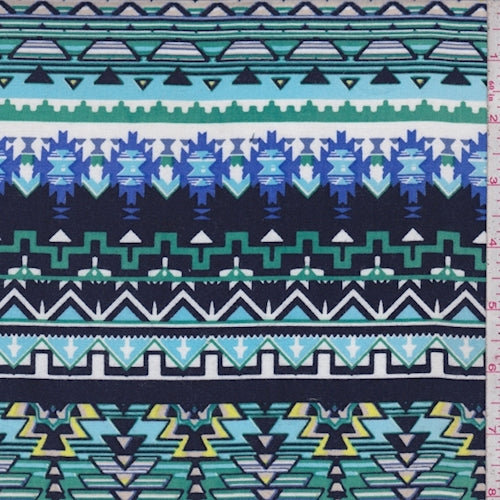 Navy/Jade Aztec Stripe Rayon Challis Fabric