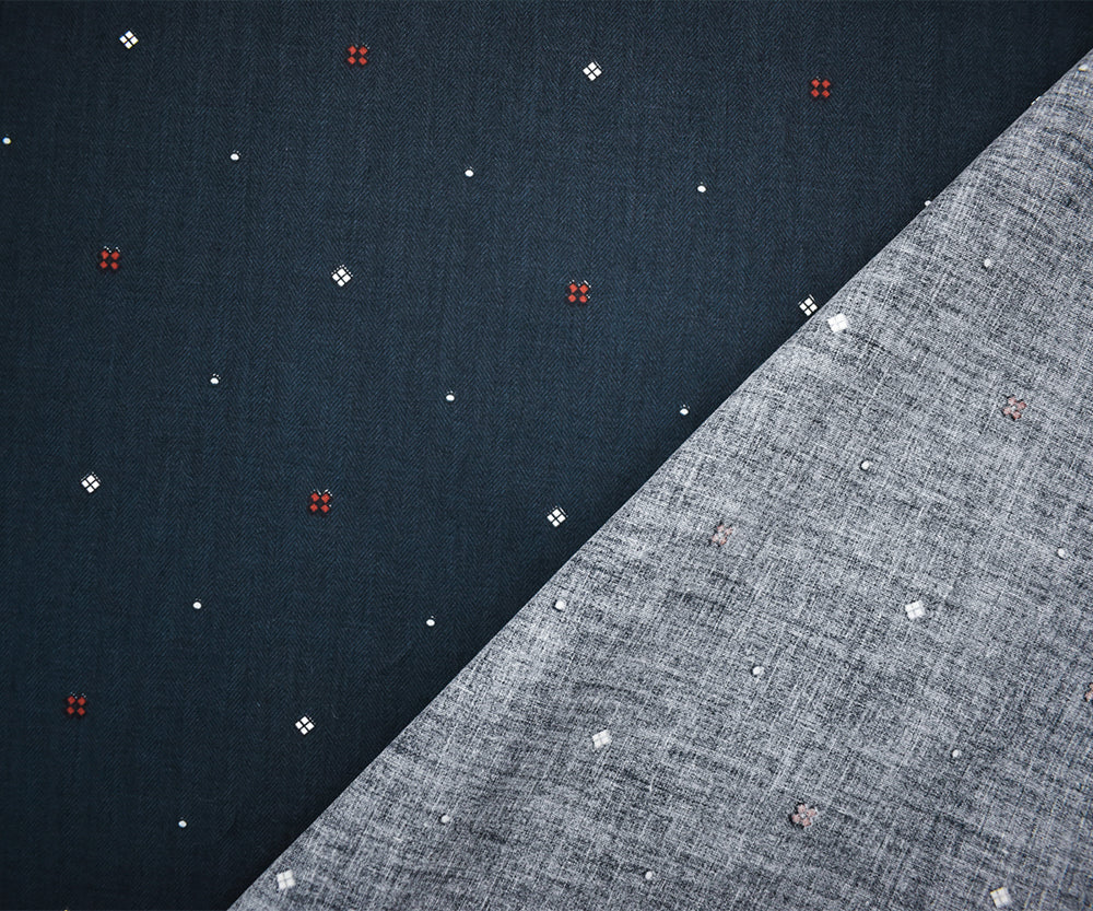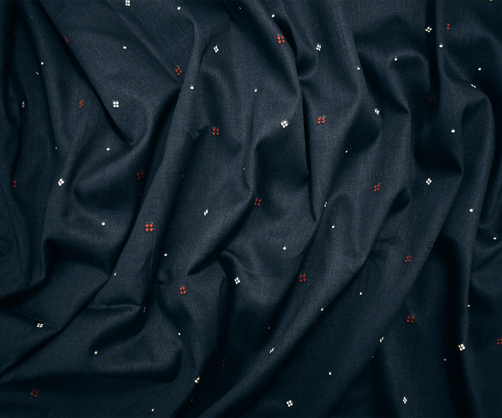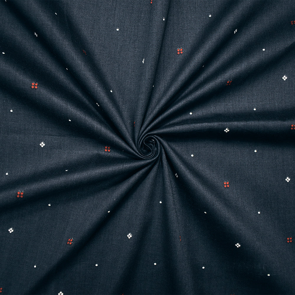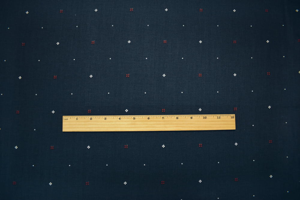 Navy-Red-White Japanese Cotton Micro Diamond Printed Sateen Woven Fabric