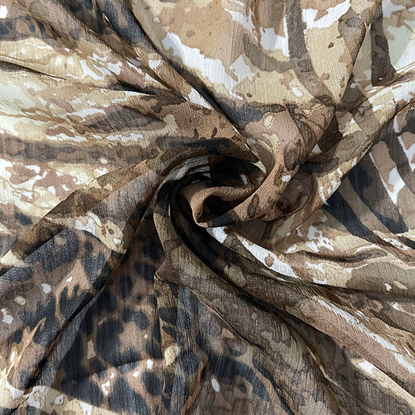 Olive Multi Animal Print Crinkled Chiffon Fabric