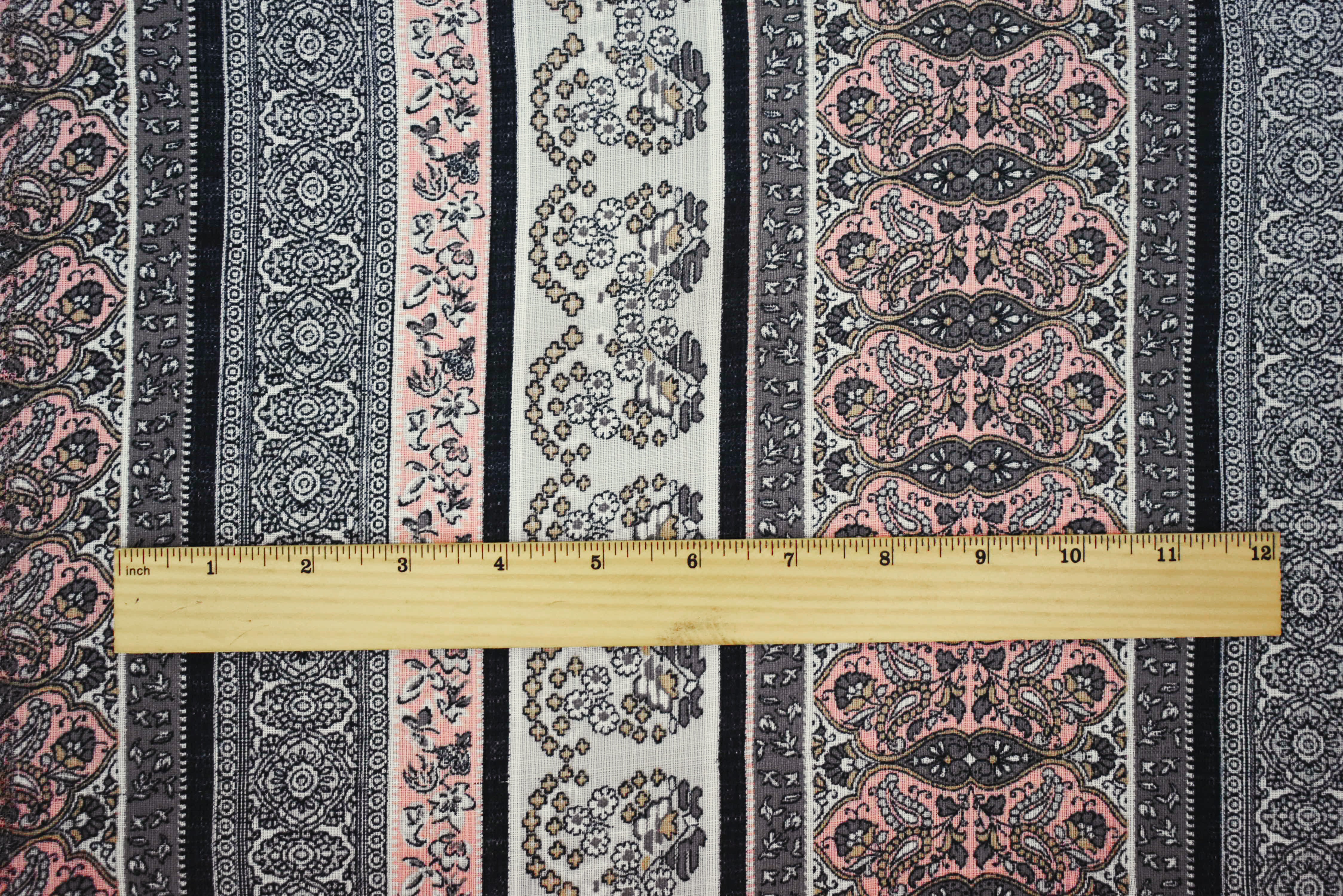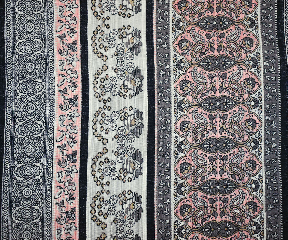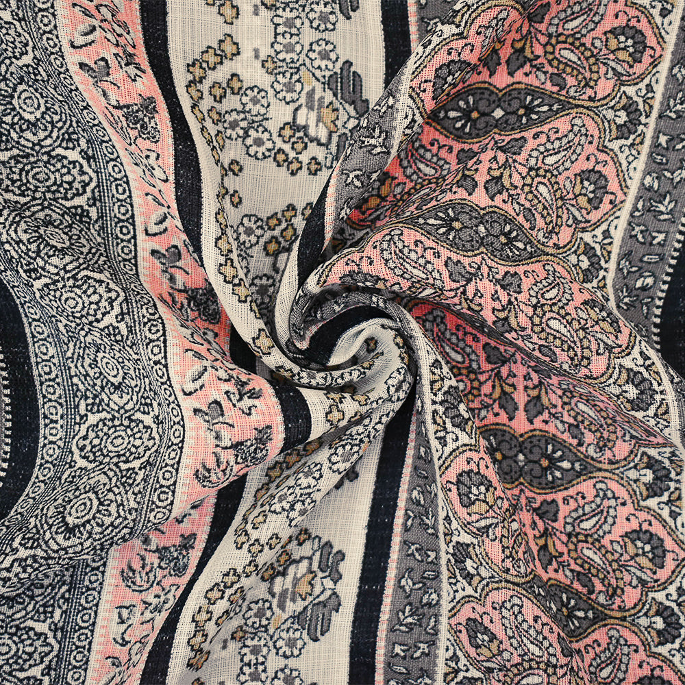 Peach-Gray-Multi Nylon Paisley Floral Stripe Printed Sheer Woven Fabric