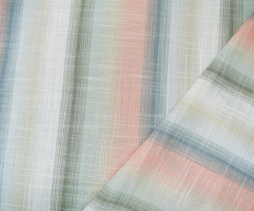 Pink-Blue-Multi Cotton-Rayon Famous Maker Vertical Stripe Slub Woven Fabric