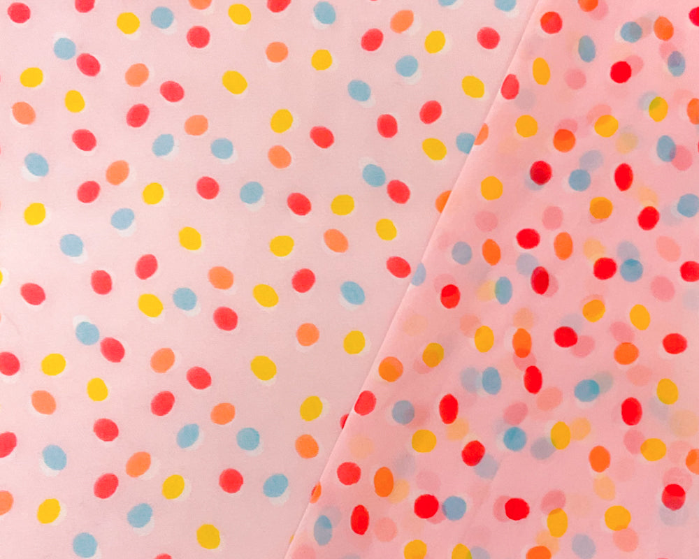 Pink-Blue Multi Poly Dot Printed Chiffon Woven Fabric