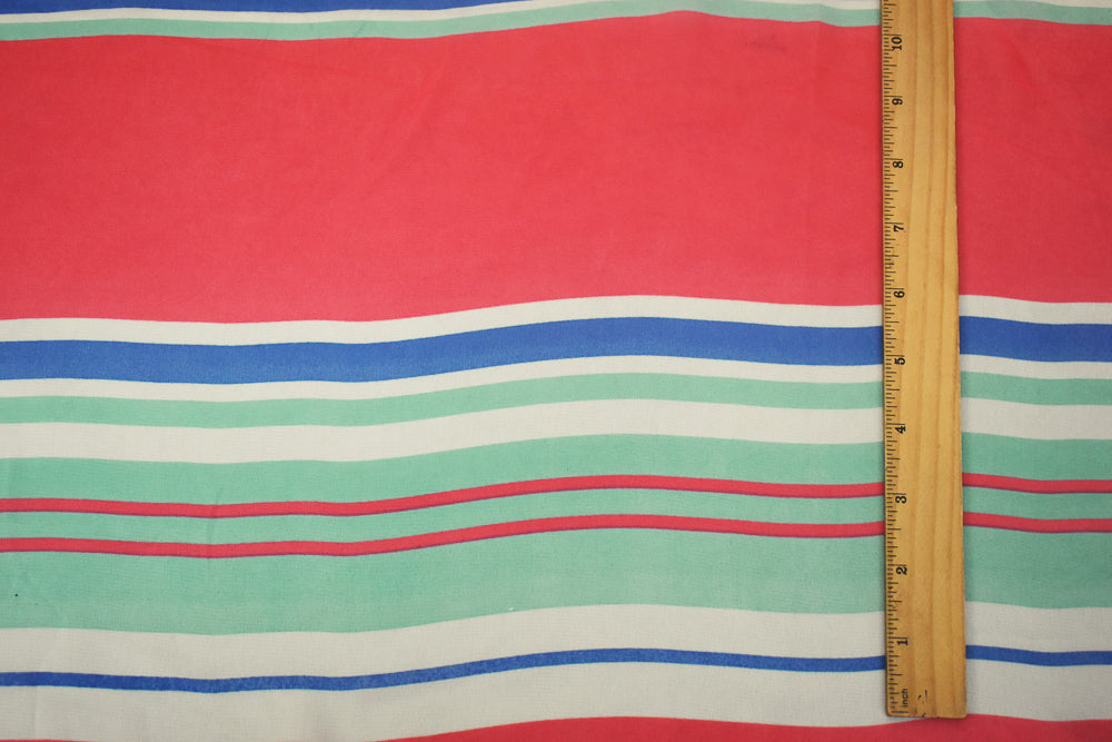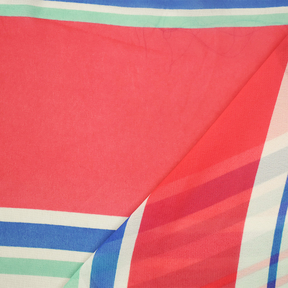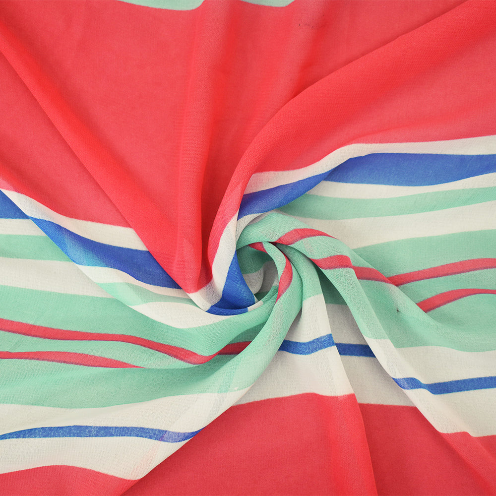Pink-Blue-Multi Stripe Printed Poly Chiffon Woven Fabric