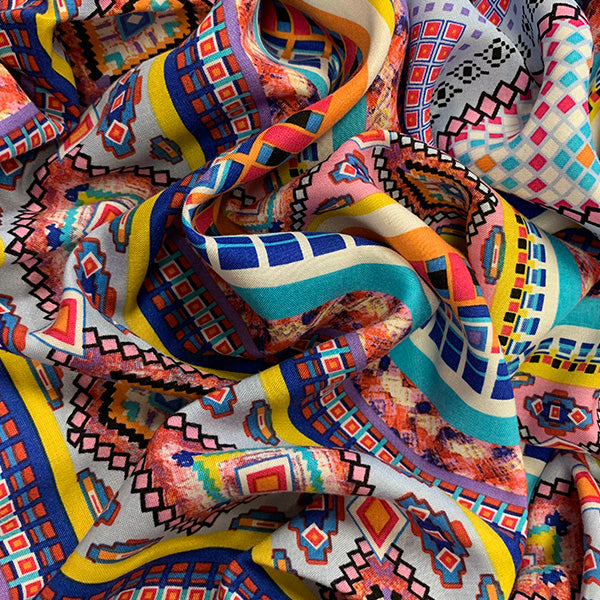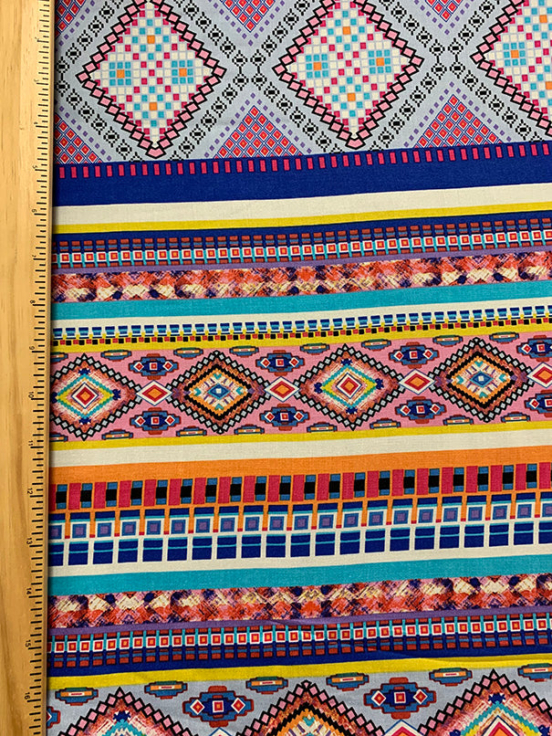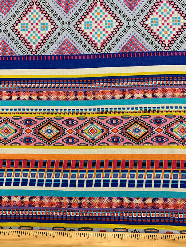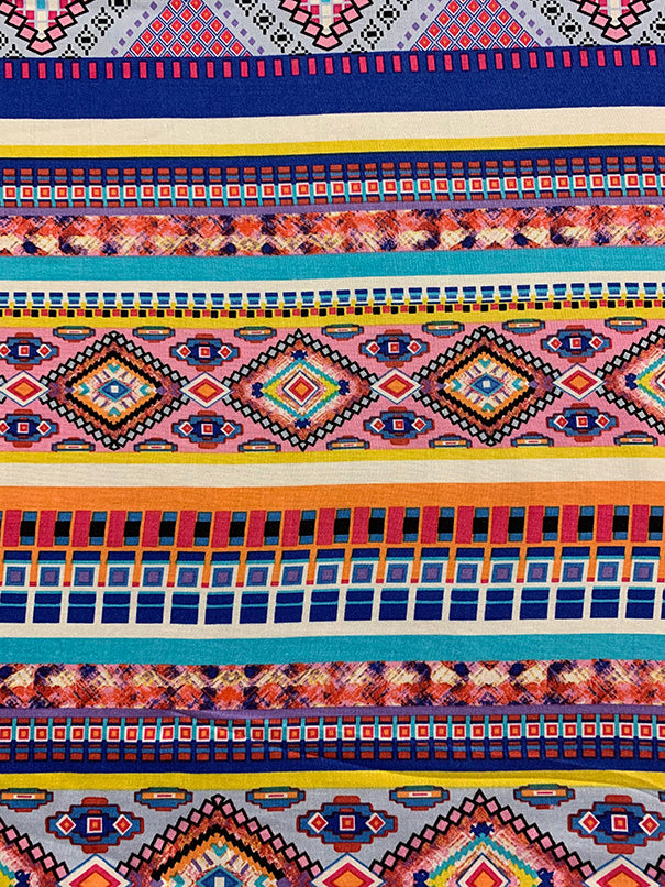 Pink Multi Aztec Stripe Print Rayon Challis Fabric