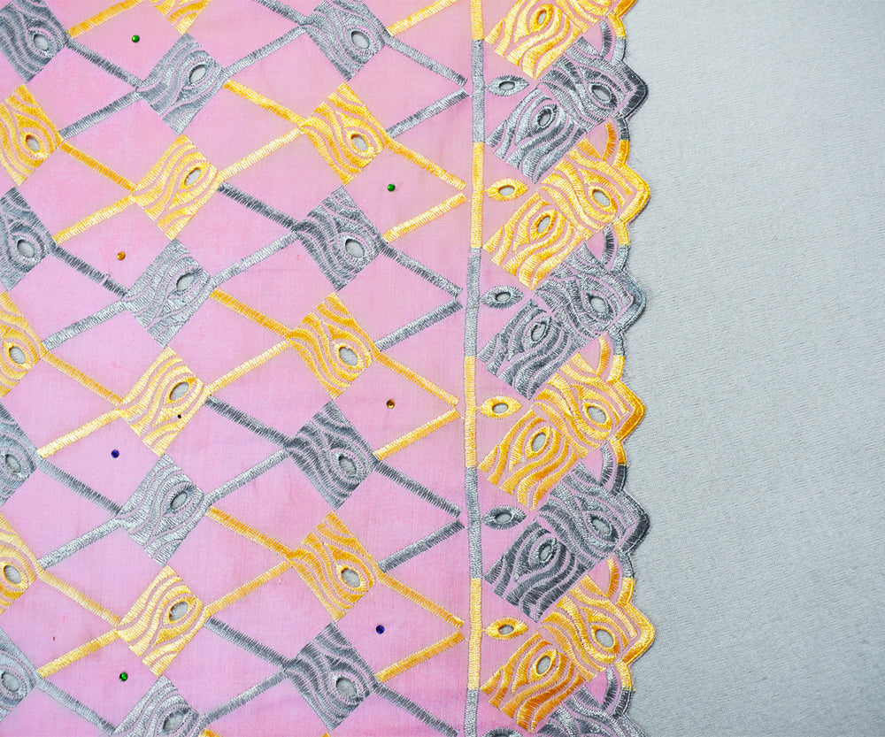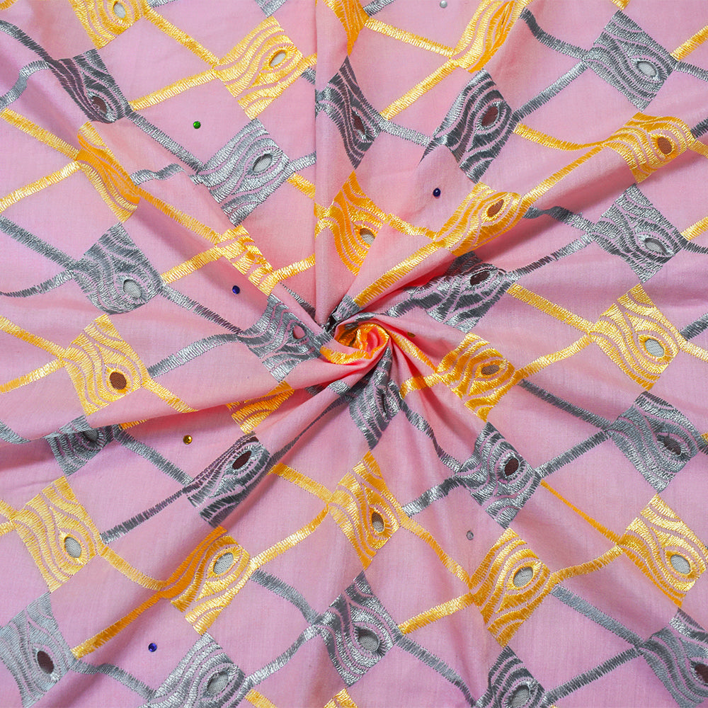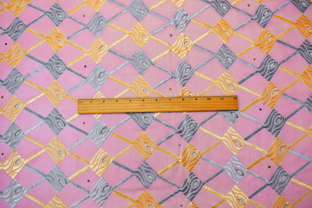 Pink-Multi Poly Embroidered Abstract Scallop Rhinestone Woven Fabric