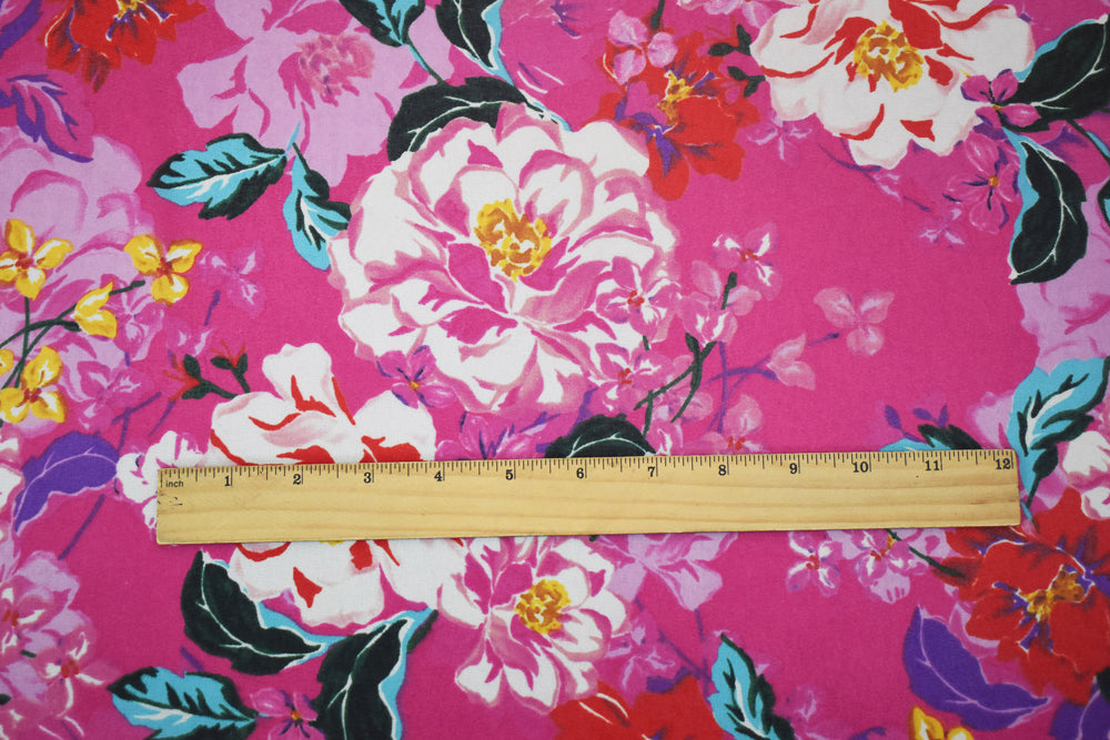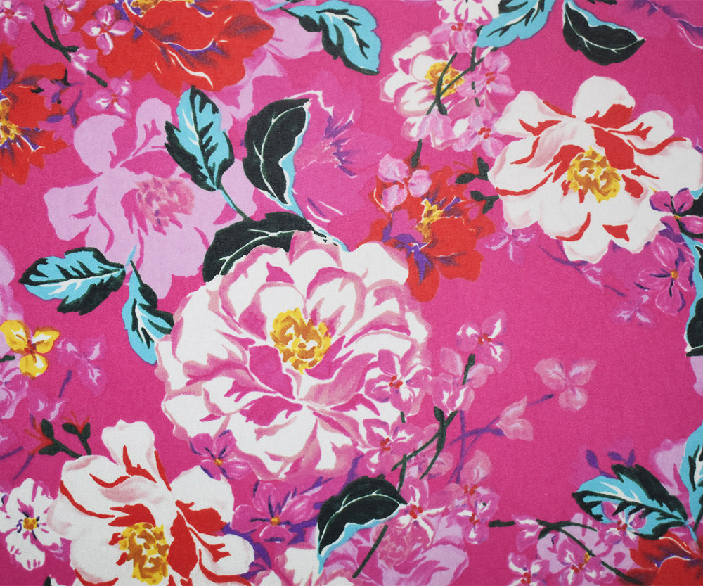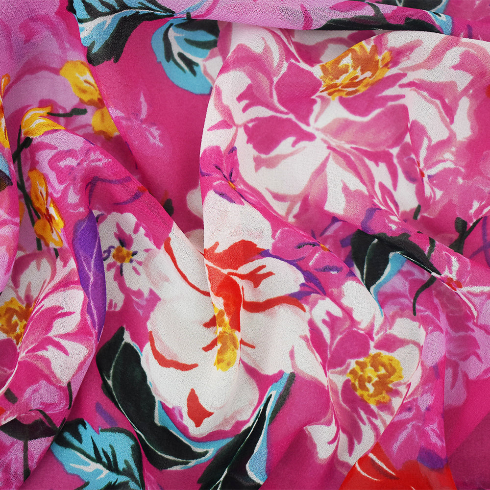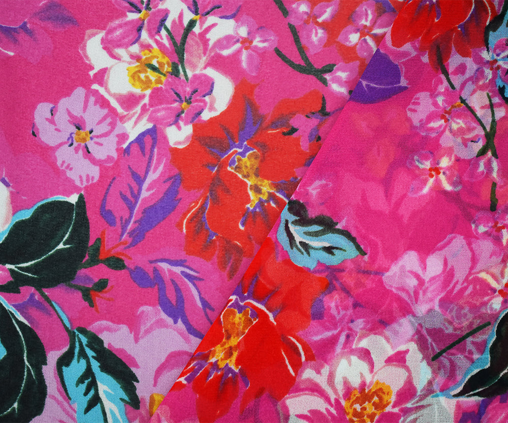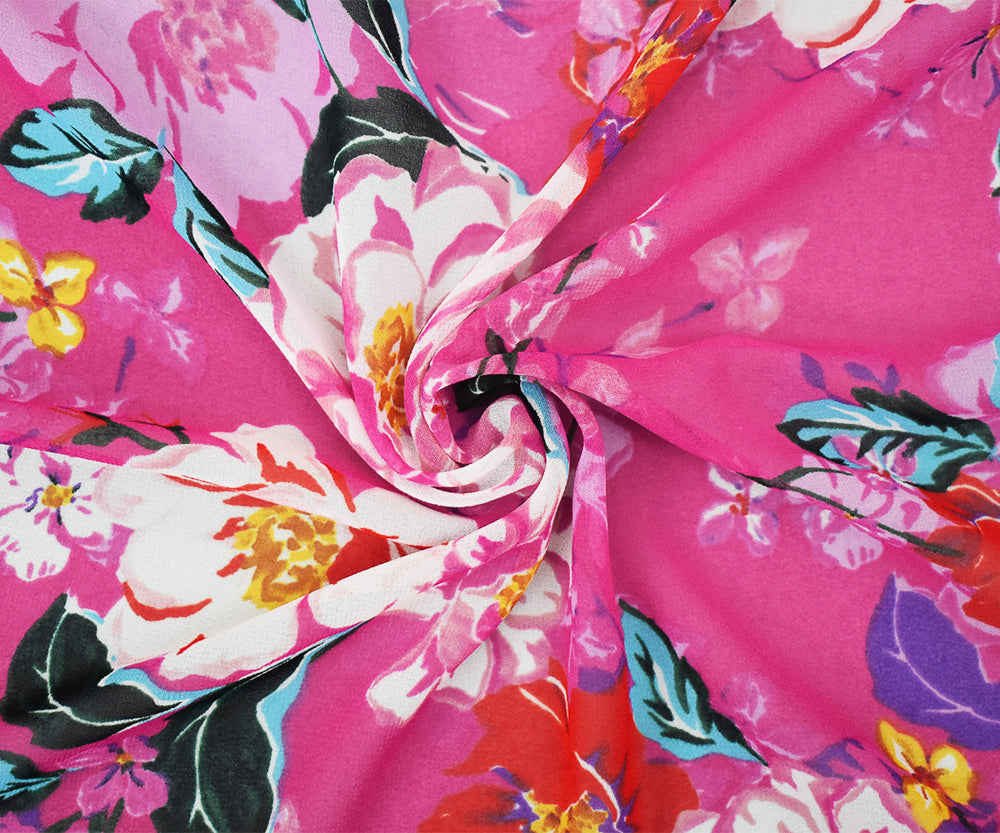 Pink-Orange-Multi Floral Printed Pebble Chiffon Woven Fabric