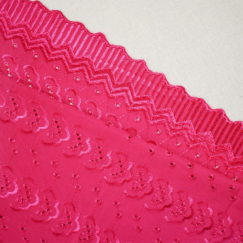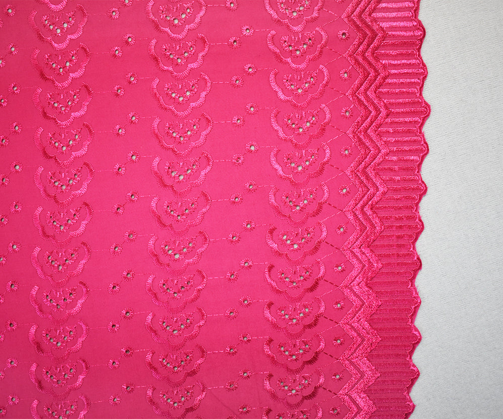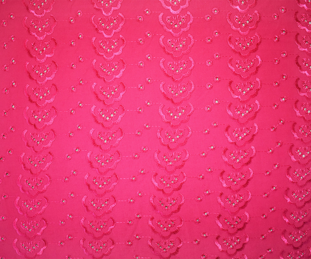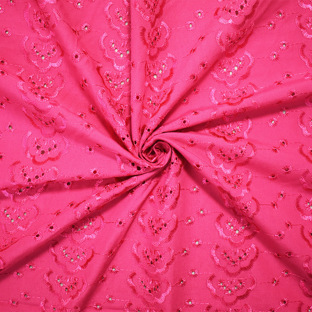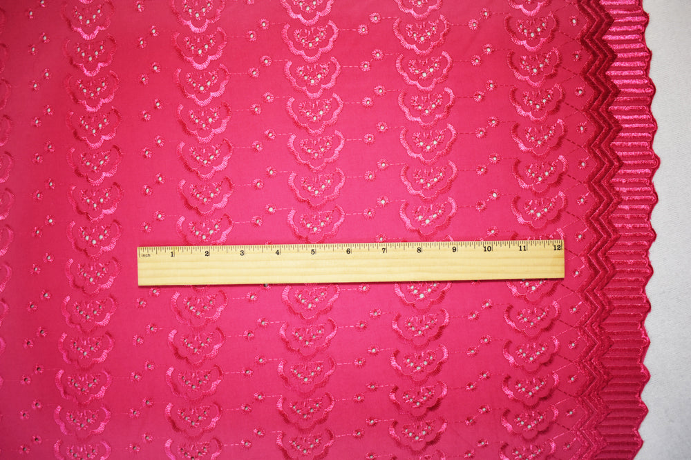 Pink Poly-Cotton Embroidered Abstract Geometric Eyelet Scallop Woven Fabric